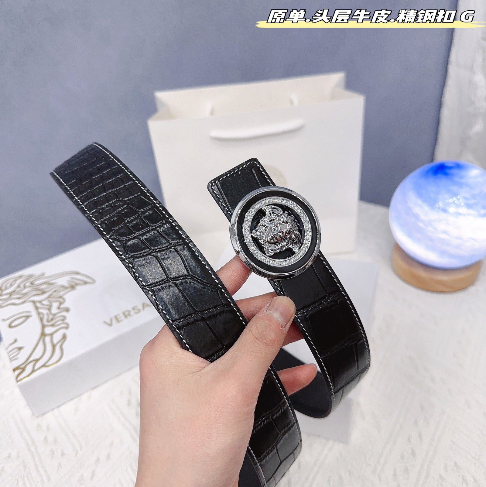 Home Belt VERSACE Belt Versace Classic Round Loop Buckle Black Crocodile Pattern Belt Simple and Elegant Classic Fashion