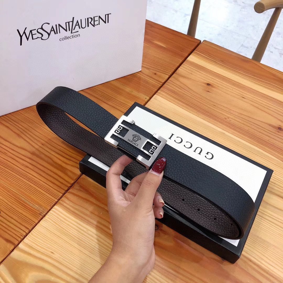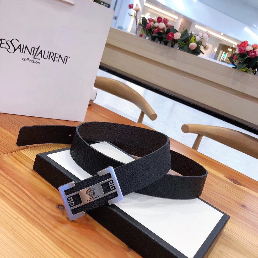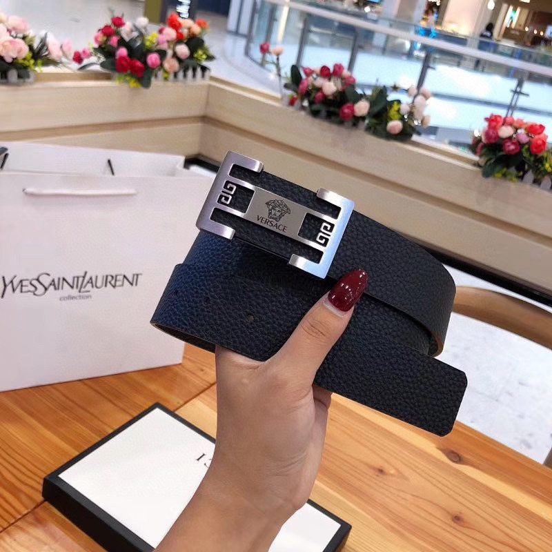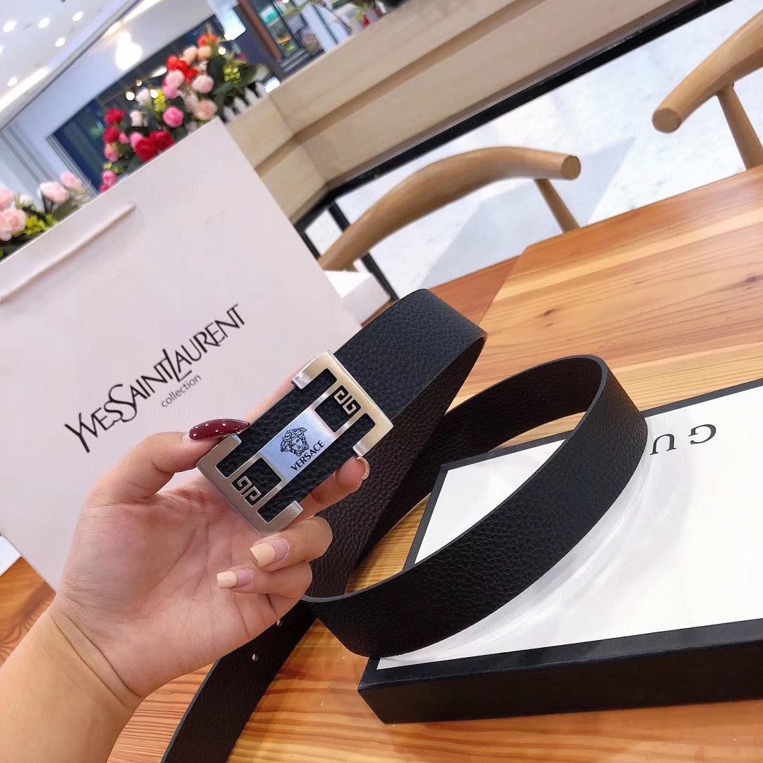 Versace Classic Square Buckle Black Belt Simple and Elegant, Low key Luxury