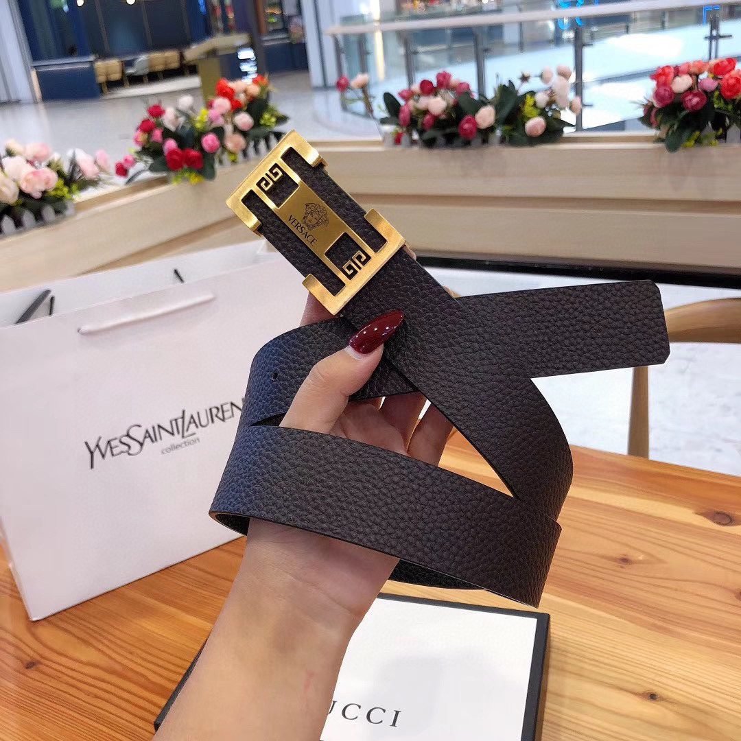 Home Belt VERSACE Belt Versace Classic Square Buckle Black Belt Simple and Elegant, Low key Luxury