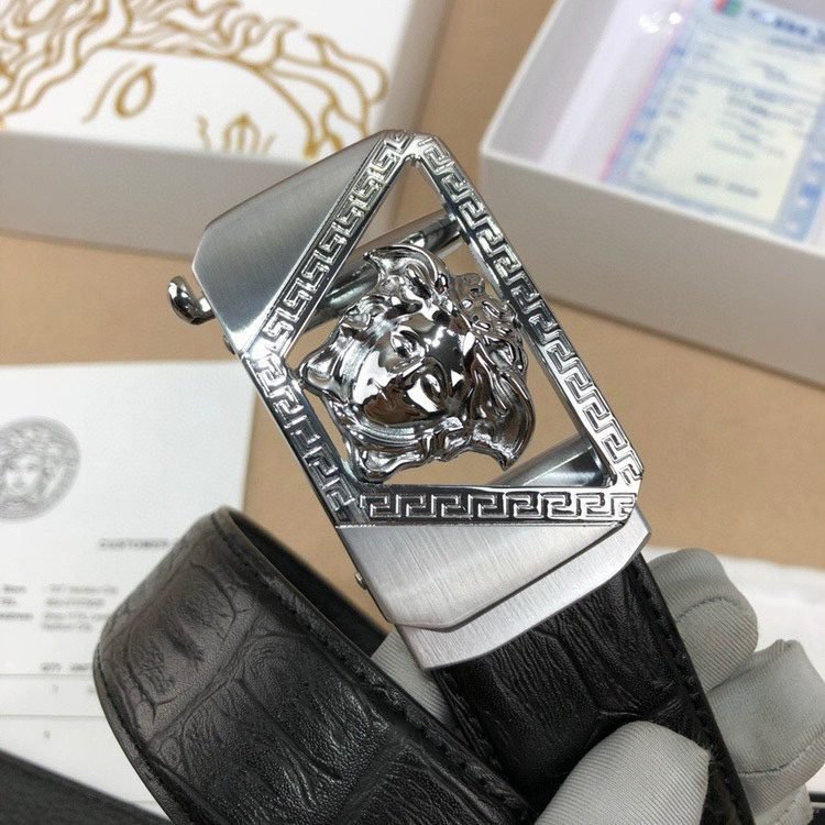 Home Belt VERSACE Belt Versace Classic Square Buckle Black Crocodile Pattern Belt Simple, Grand, Noble, and Elegant