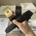 Versace Classic Square Buckle Black Texture Belt Simple, Elegant, Exquisite, and Elegant