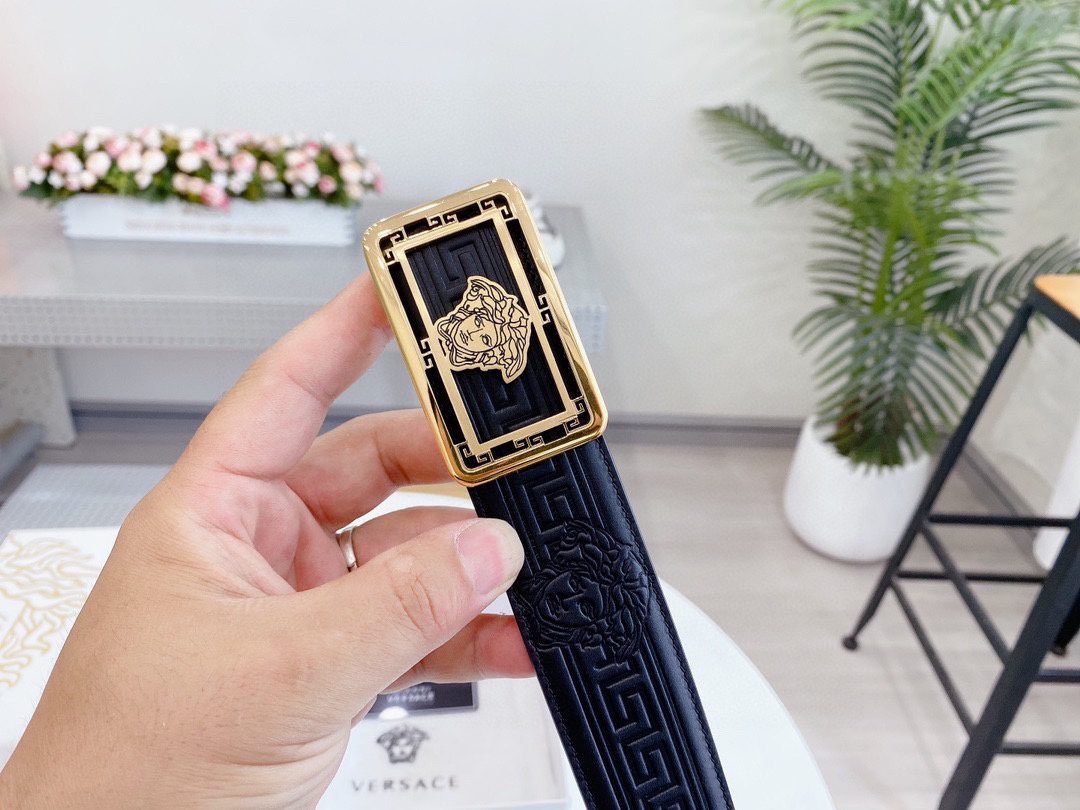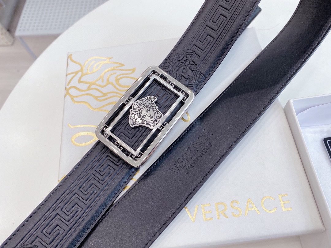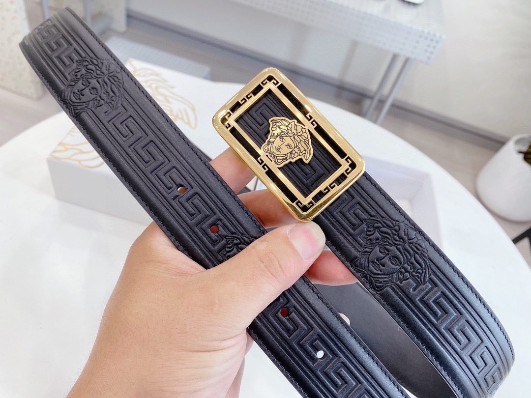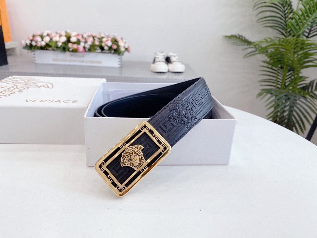 Home Belt VERSACE Belt Versace Classic Square Buckle Black Texture Belt Simple, Grand, Noble, and Elegant