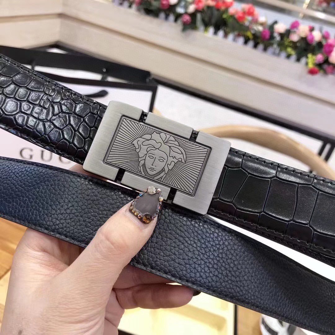 Versace Classic Medusa Relief Buckle Black Texture Belt Classic Fashion Low key Luxury $210.00 Original price was: $210.00.$66.69Current price is: $66.69.