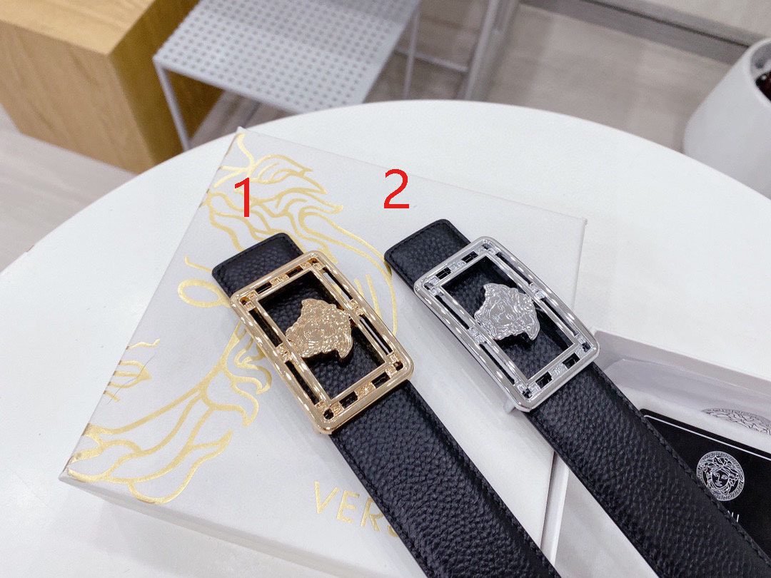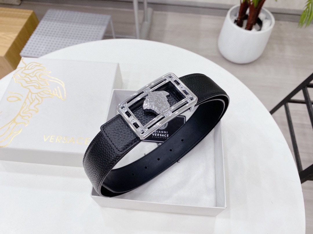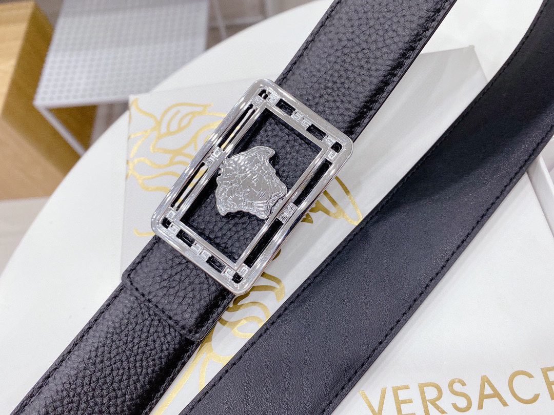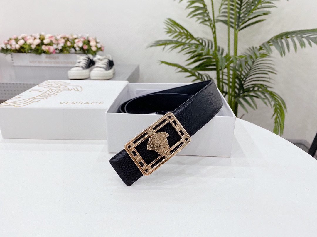 Home Belt VERSACE Belt Versace Classic Square Loop Buckle Black Belt, Simple and Elegant, Classic and Fashionable