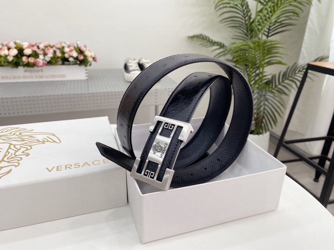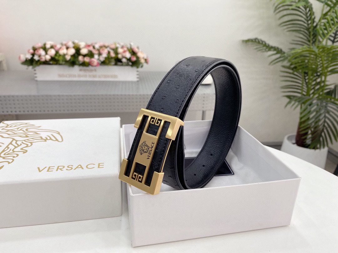 Home Belt VERSACE Belt Versace Classic Square Loop Buckle Black Belt, Simple and Elegant, Classic and Fashionable