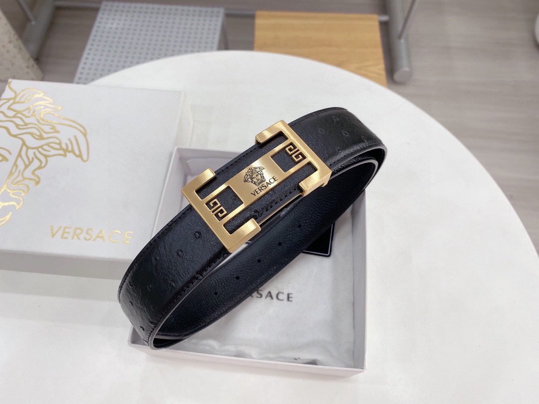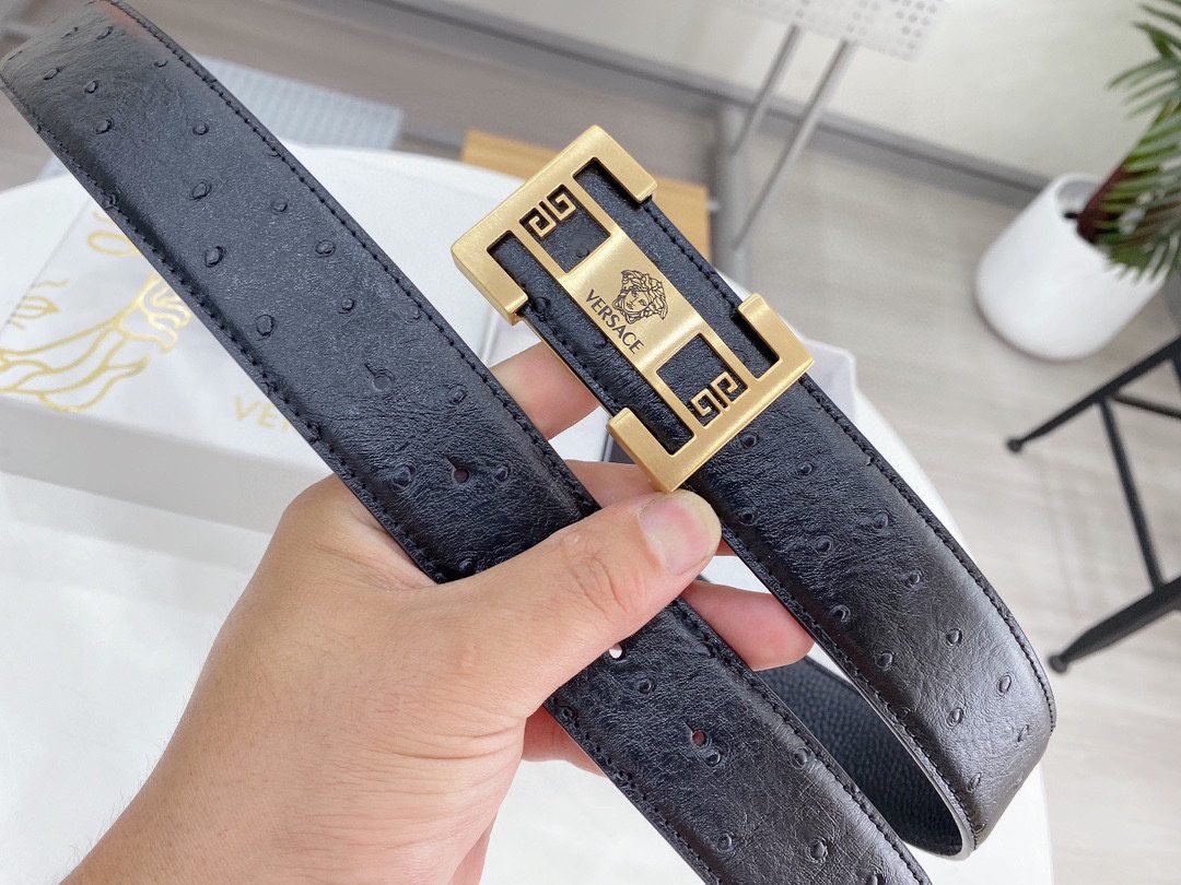 Versace Classic Square Loop Buckle Black Belt, Simple and Elegant, Classic and Fashionable