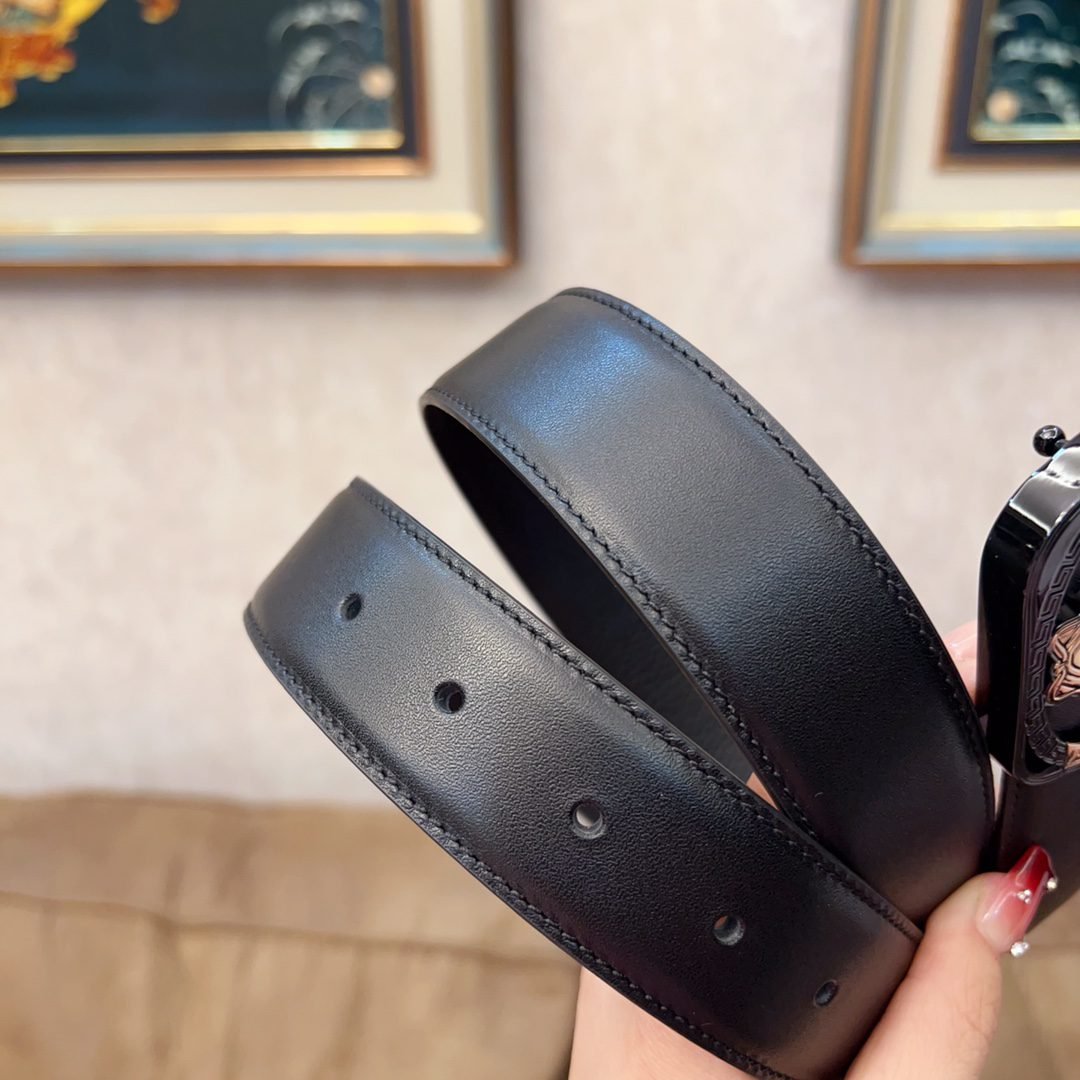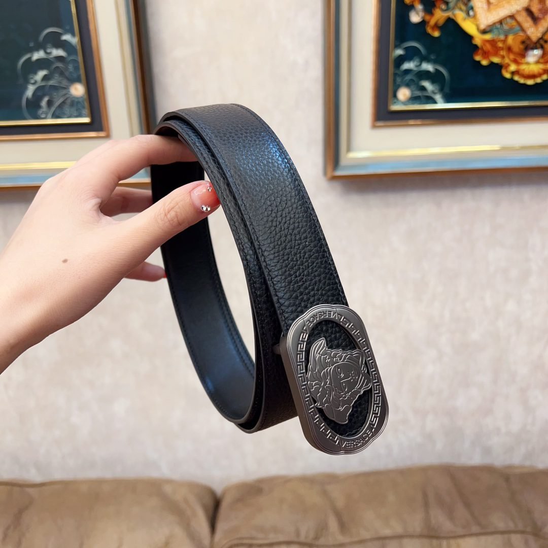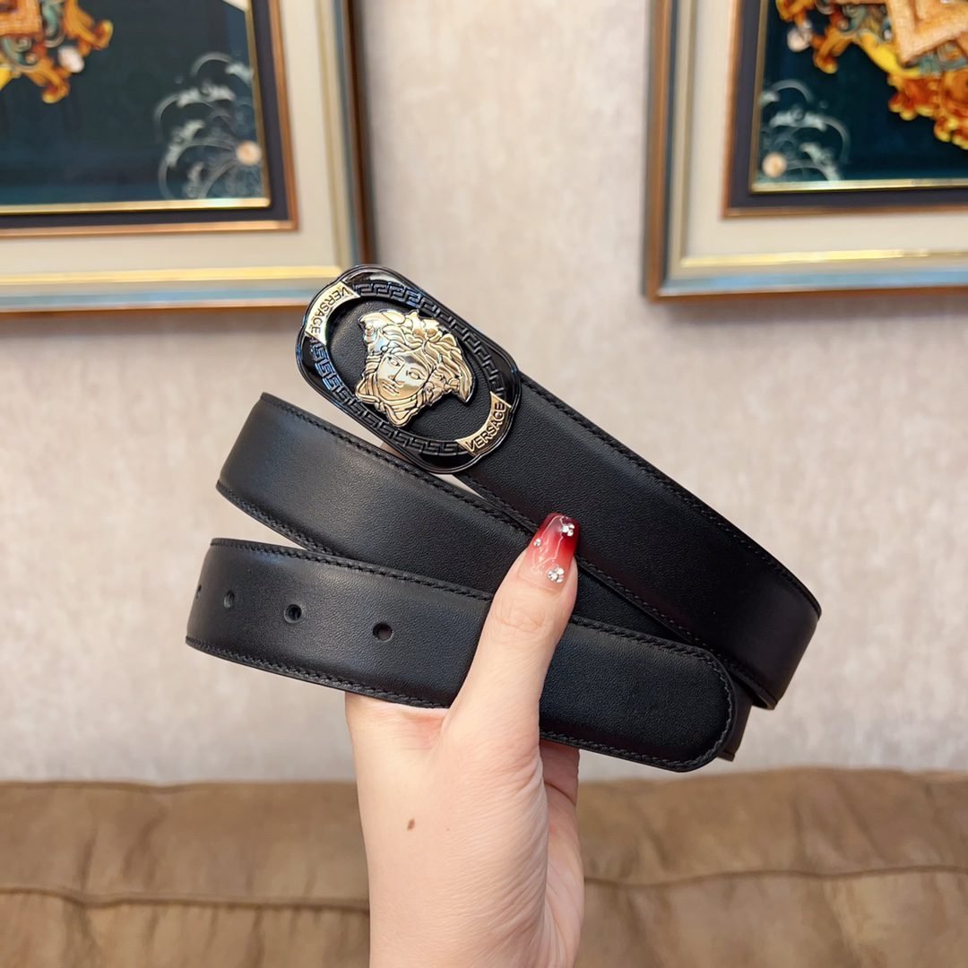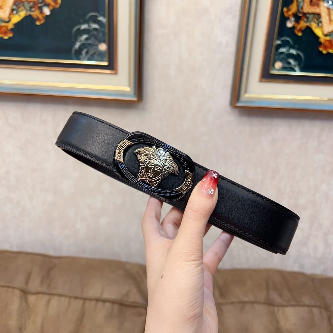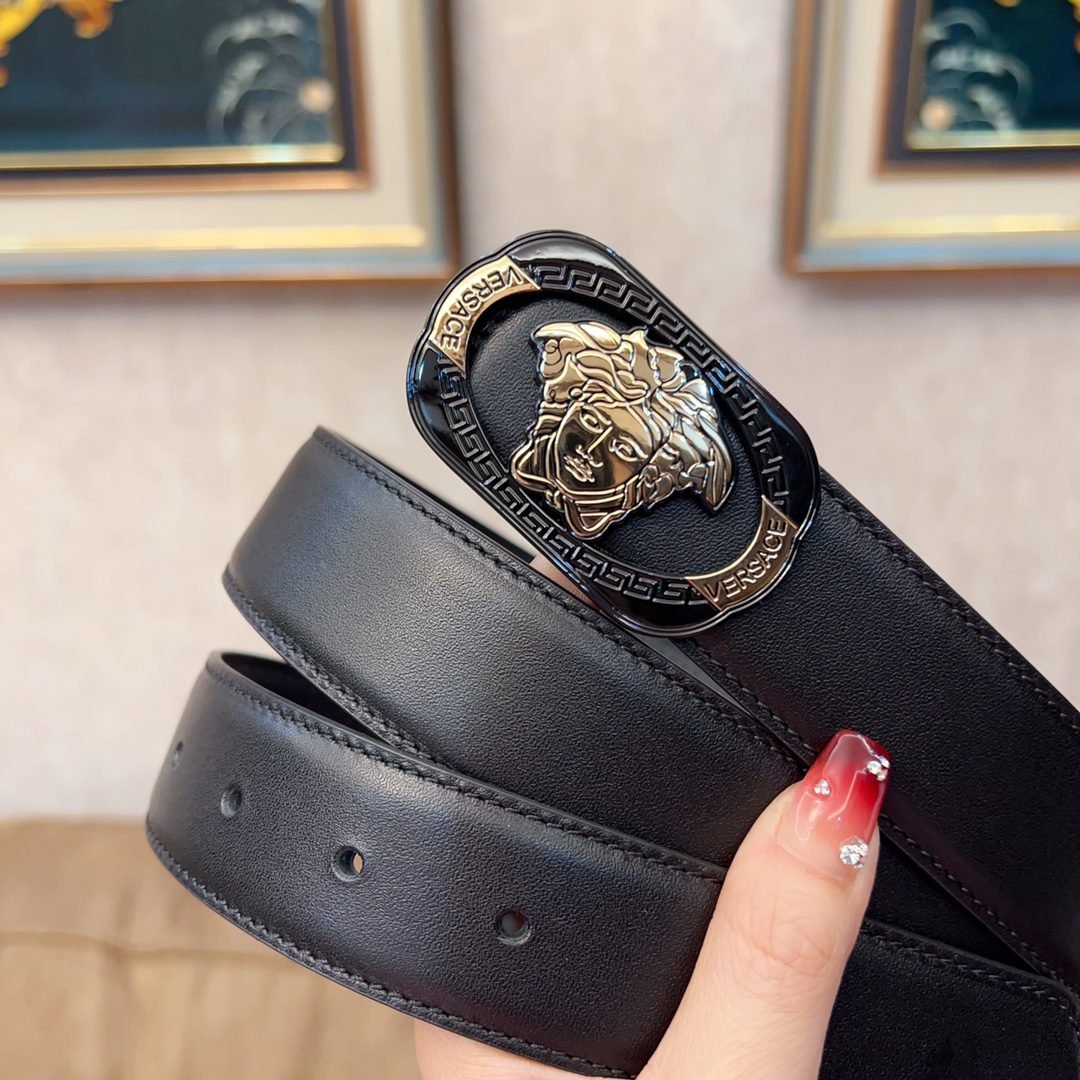 Home Belt VERSACE Belt Versace Classic Square Ring Buckle Black Belt Simple, Grand, Noble, Luxury