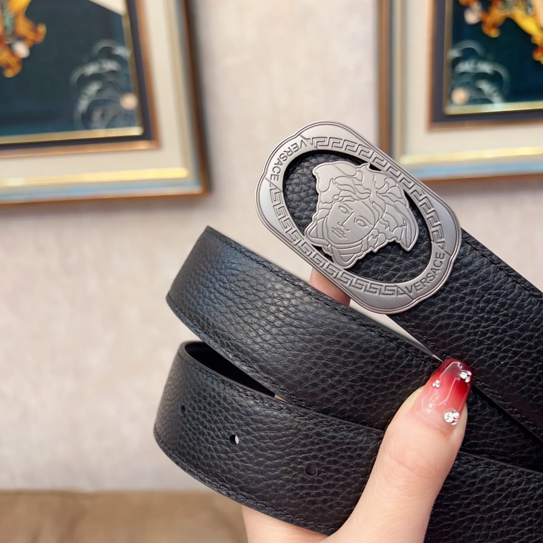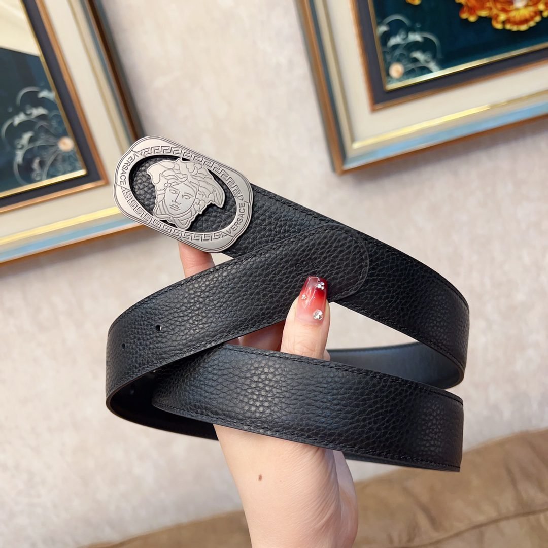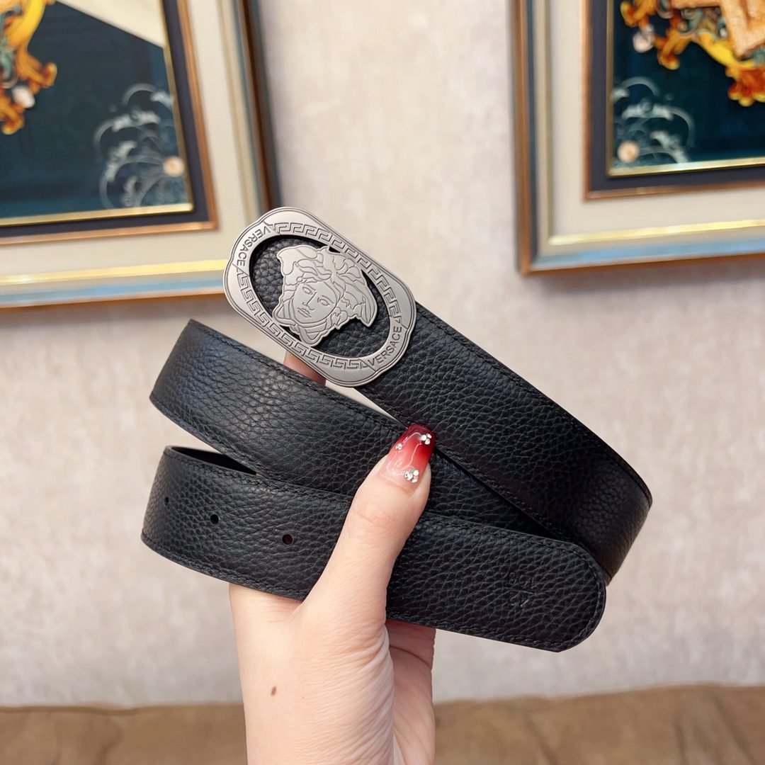 Versace Silver Circular Buckle Black Belt Simple, Elegant, Noble, Luxury