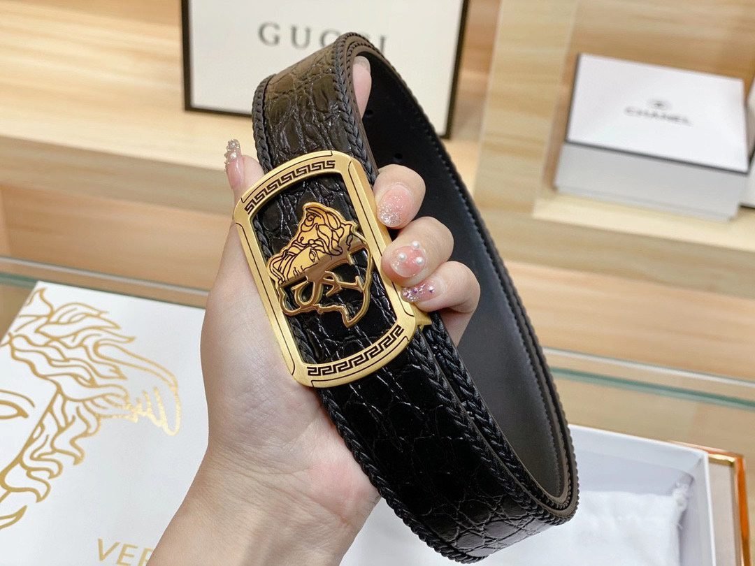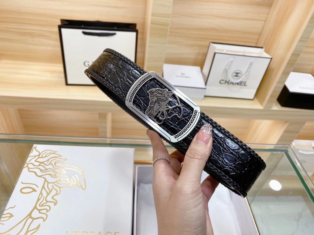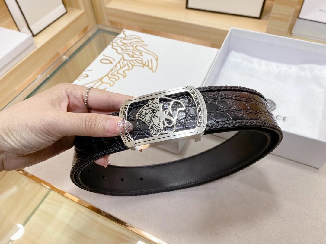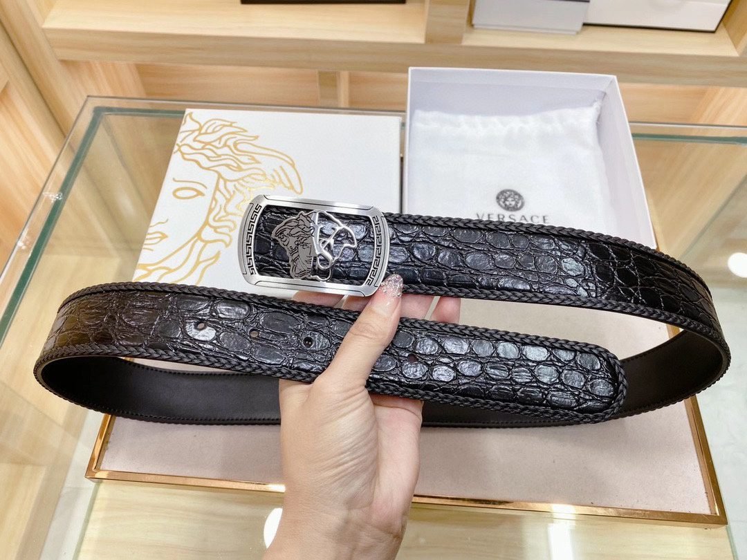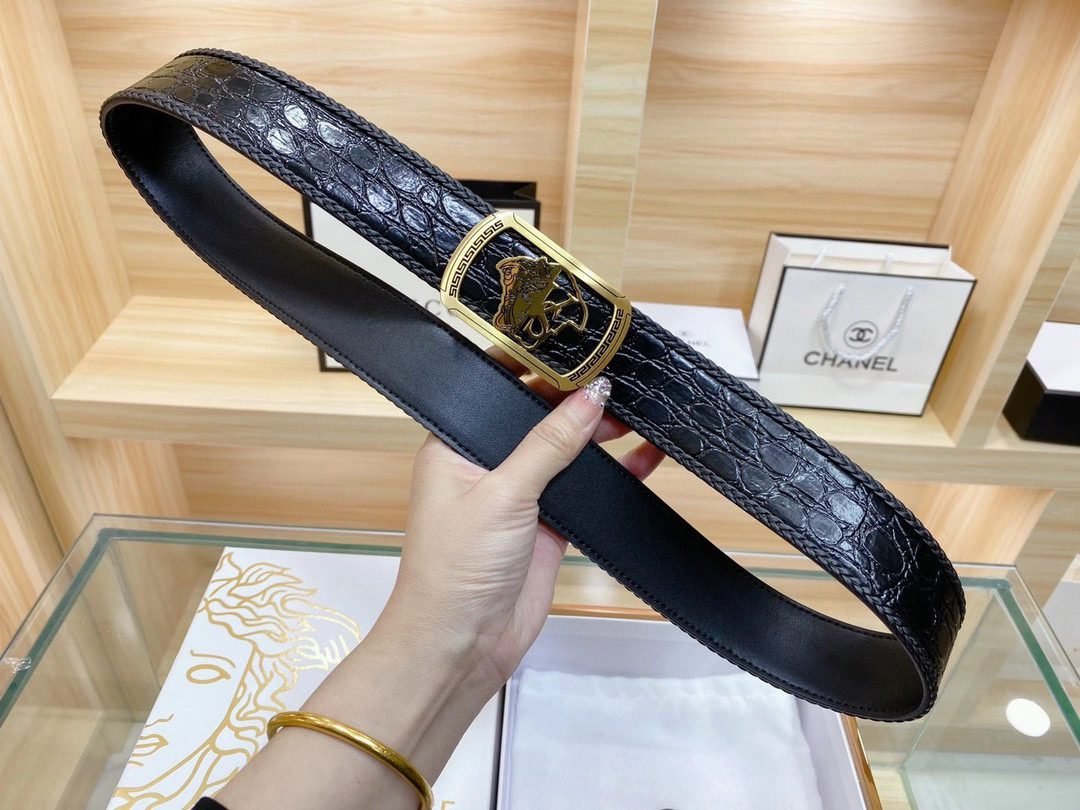 Home Belt VERSACE Belt Versace Classic Square Ring Buckle Black Crocodile Pattern Belt Simple, Fashionable, Exquisite, and Elegant
