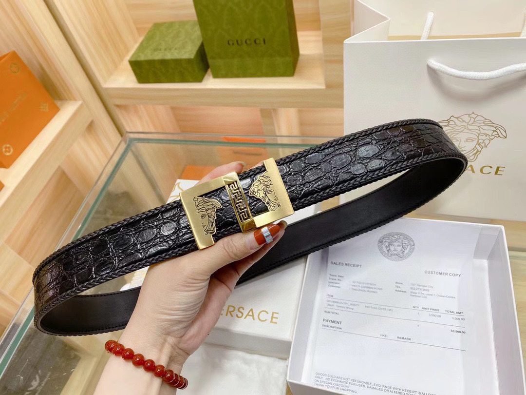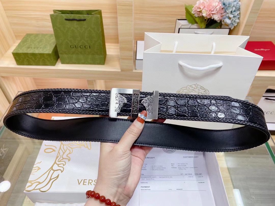 Home Belt VERSACE Belt Versace Classic Square Ring Buckle Black Crocodile Pattern Belt Simple, Fashionable, Noble, and Elegant