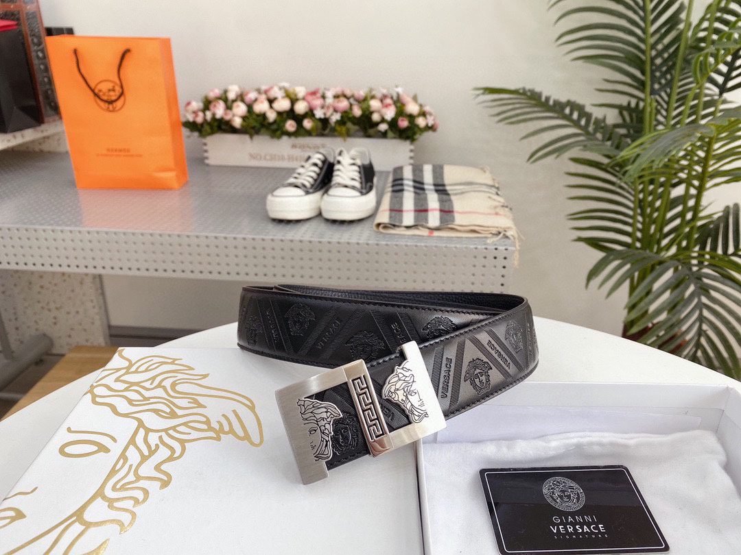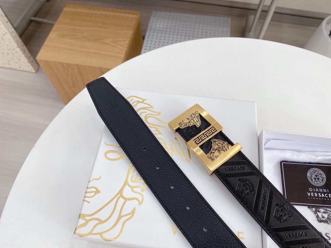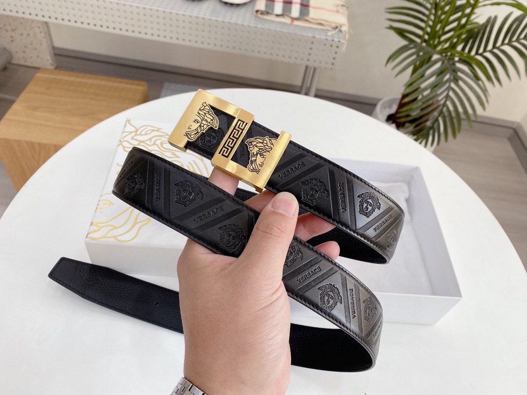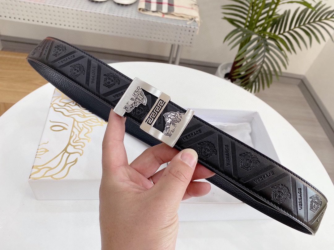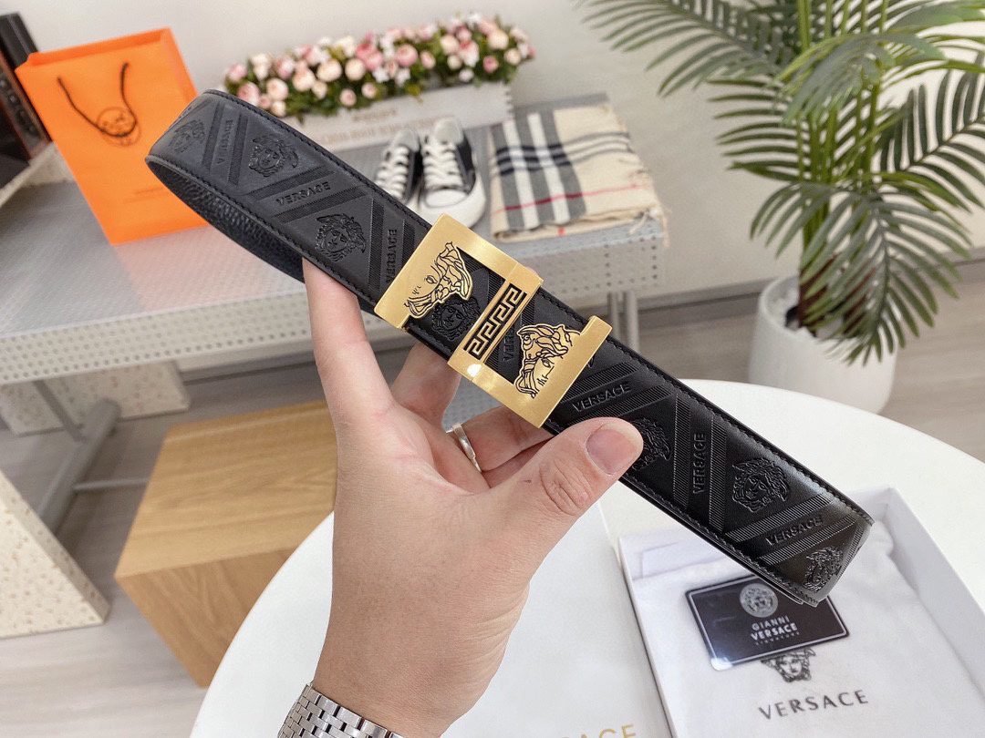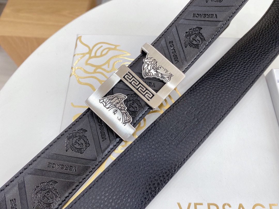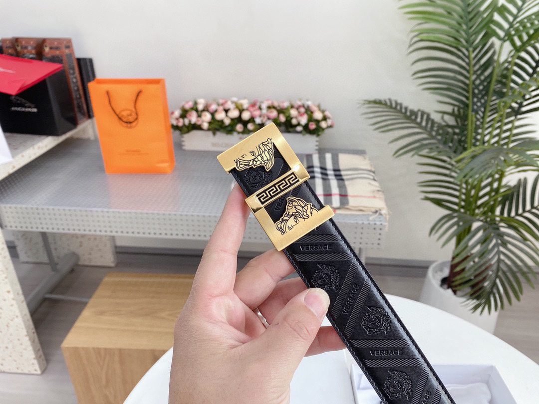 Home Belt VERSACE Belt Versace Classic Square Ring Buckle Black Texture Belt Simple Fashion Noble Luxury