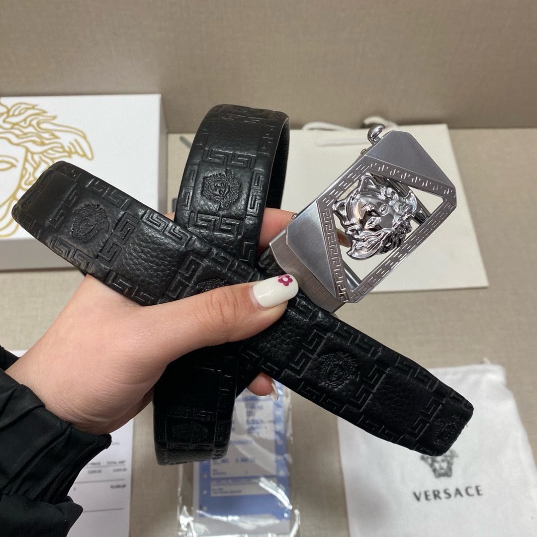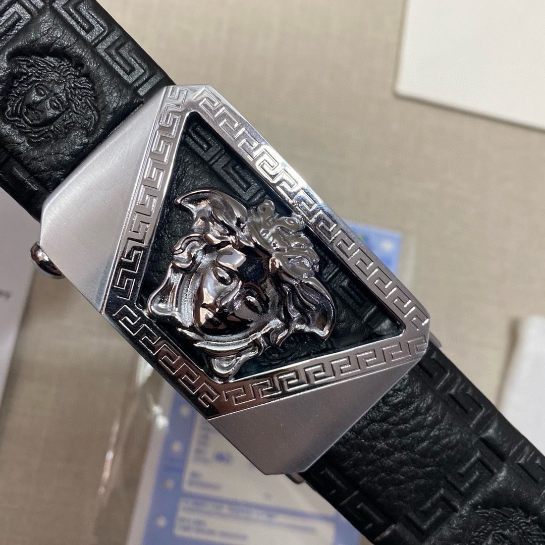Home Belt VERSACE Belt Versace Classic Square Ring Buckle Black Textured Belt Simple and Elegant Classic Fashion