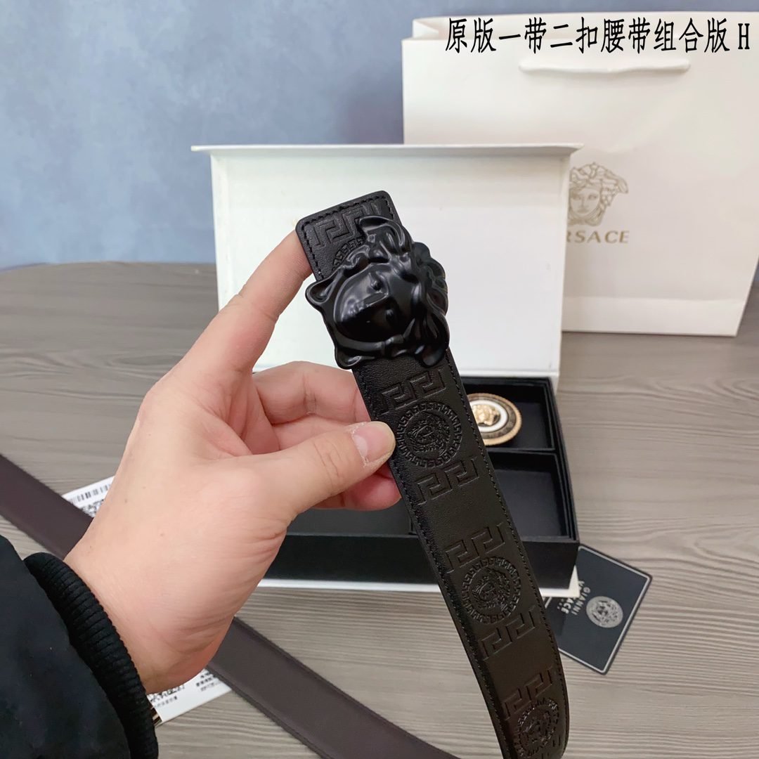 Home Belt VERSACE Belt Versace Classic Two Buckle Belt Gift Box Set, High end Fashion, Noble and Elegant