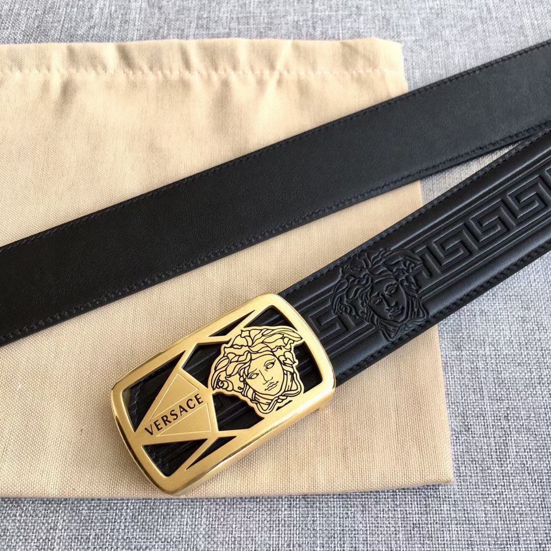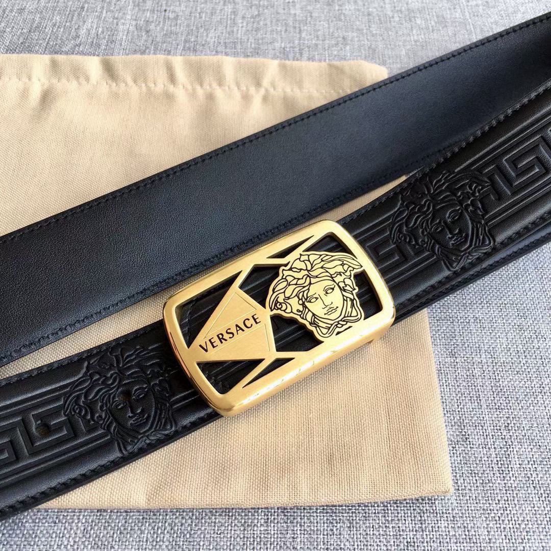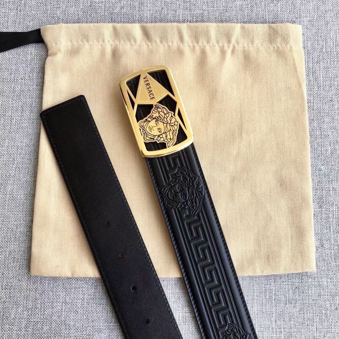 Versace gold square buckle with black texture belt, simple, atmospheric, exquisite and elegant