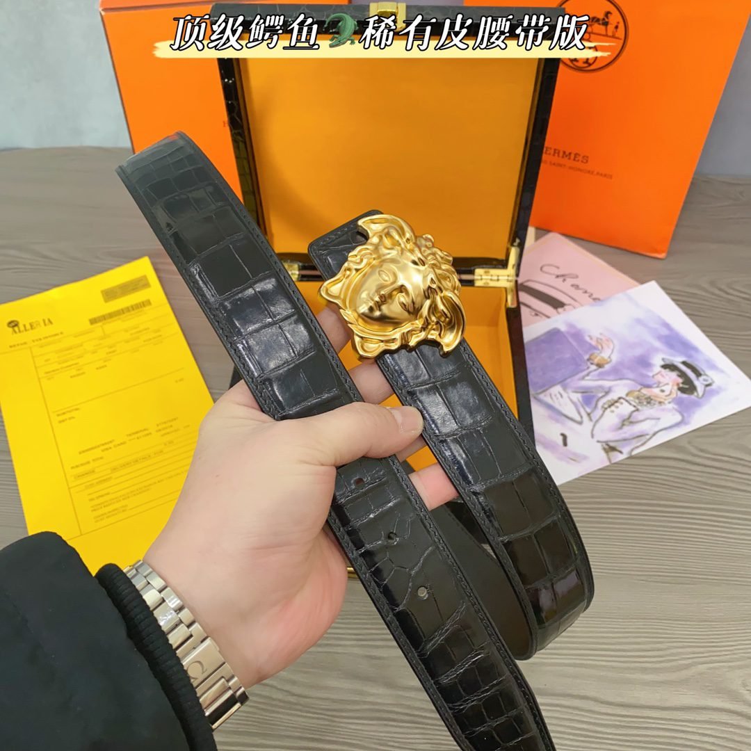 Home Belt VERSACE Belt Versace Medusa embossed buckle with black crocodile pattern belt, simple, atmospheric, low-key, luxurious
