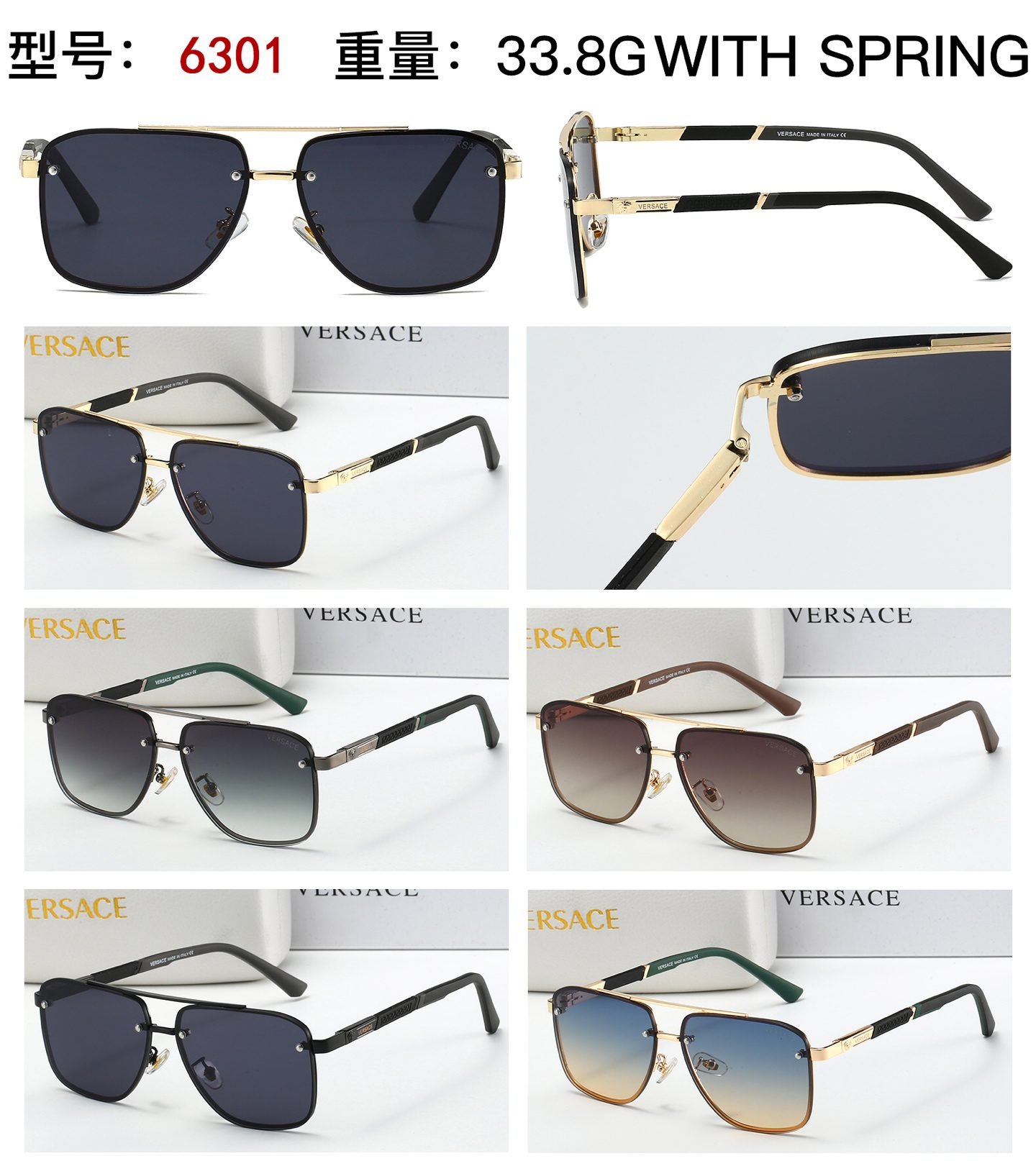 Elevate your style with Versace Model 6301 sunglasses. Boasting a sleek square design, these sunglasses come with spring hinges for a comfortable fit. Weighing just 33.8g, they offer exceptional comfort for all – day wear. Available in a variety of stylish color combinations, from classic black – gold to unique green – accented and brown – toned options, there’s a pair to match every outfit and mood. Crafted with premium materials, they blend luxury, functionality, and iconic Versace design, making them a perfect accessory for any occasion, whether you’re hitting the streets or lounging by the beach.