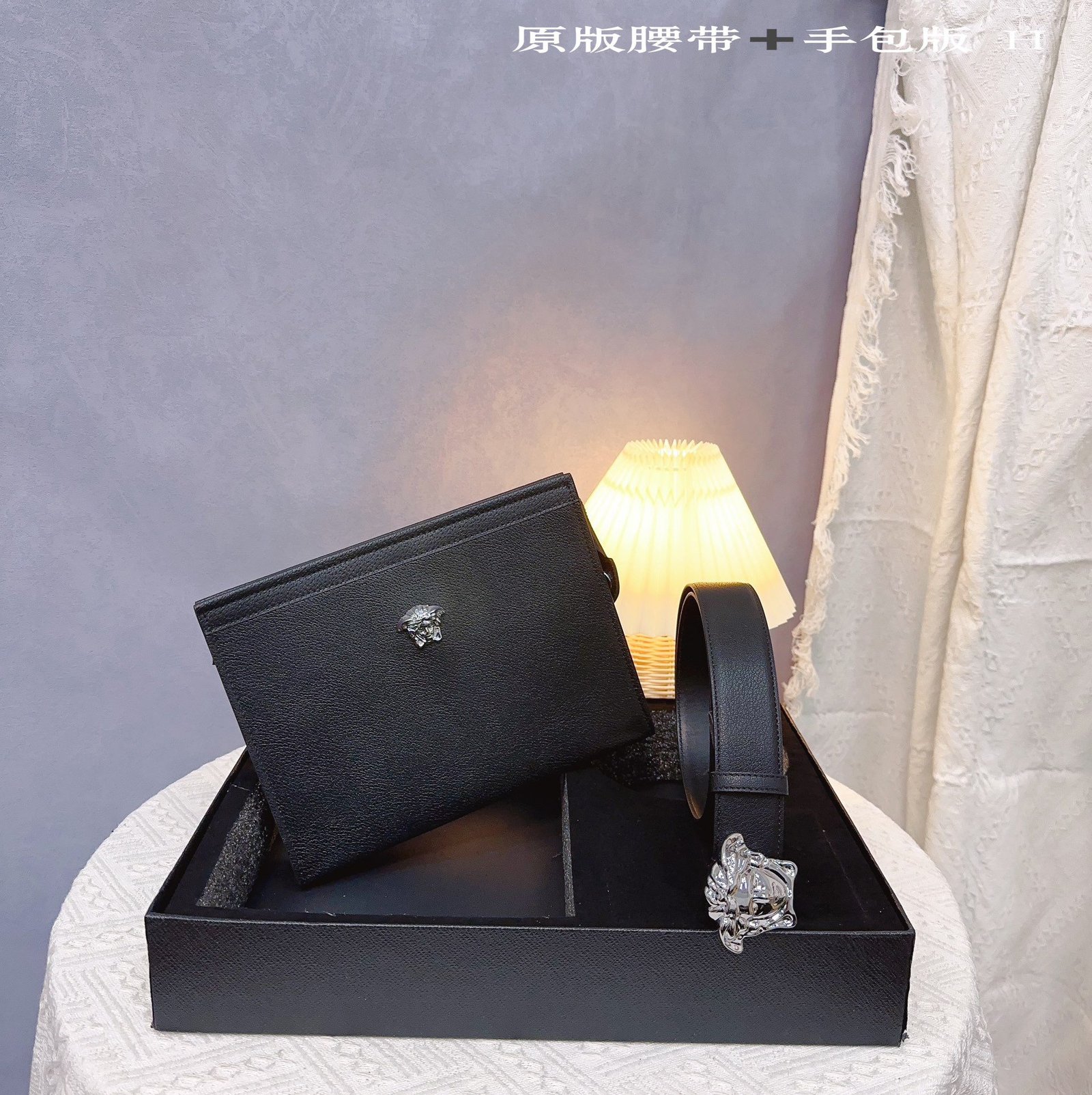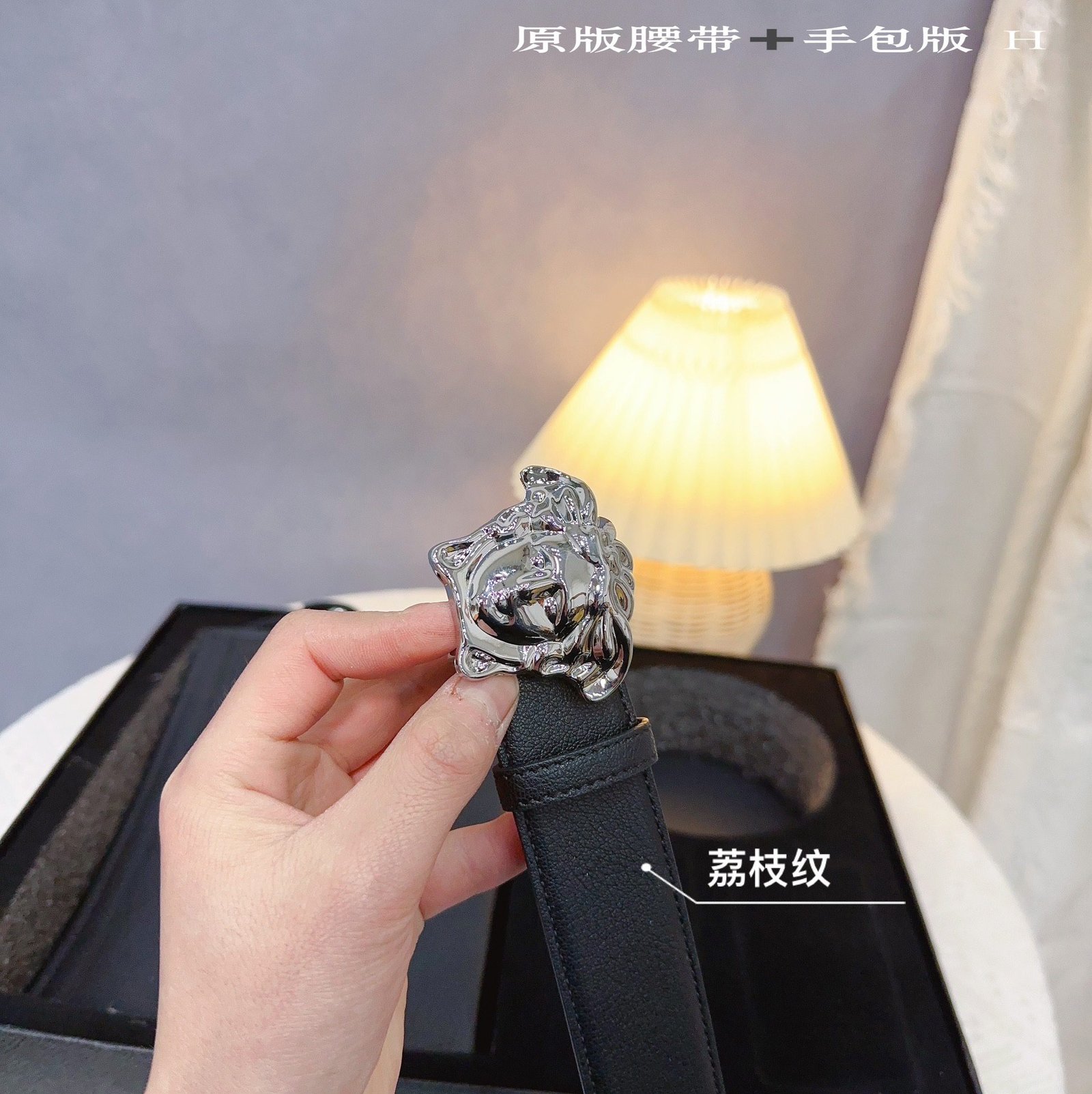 Home Belt VERSACE Belt Versace Prestige Lion King Belt and handbag set, simple and elegant, luxurious and luxurious
