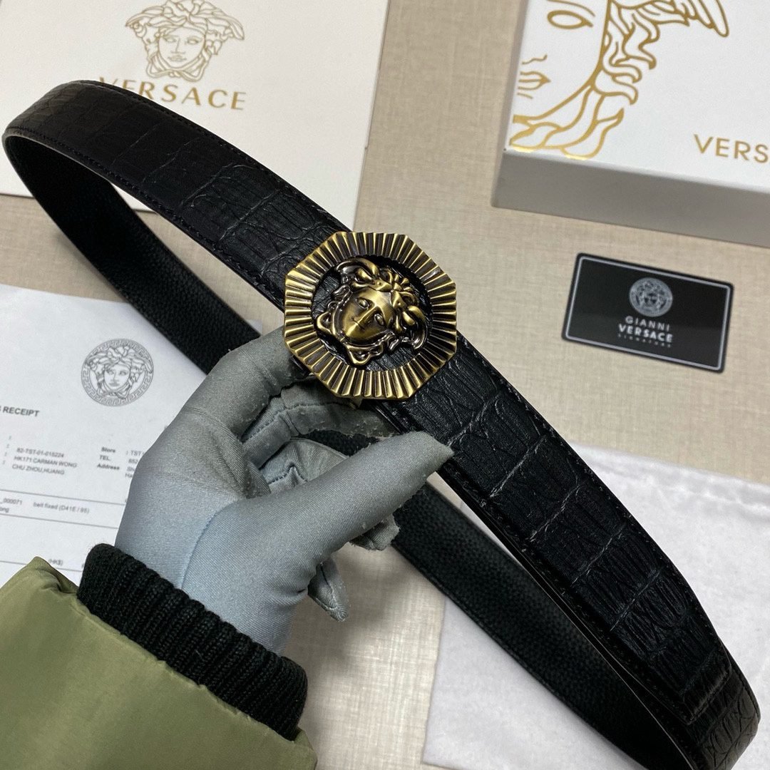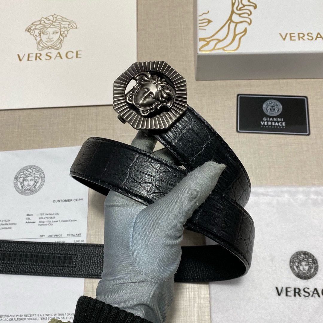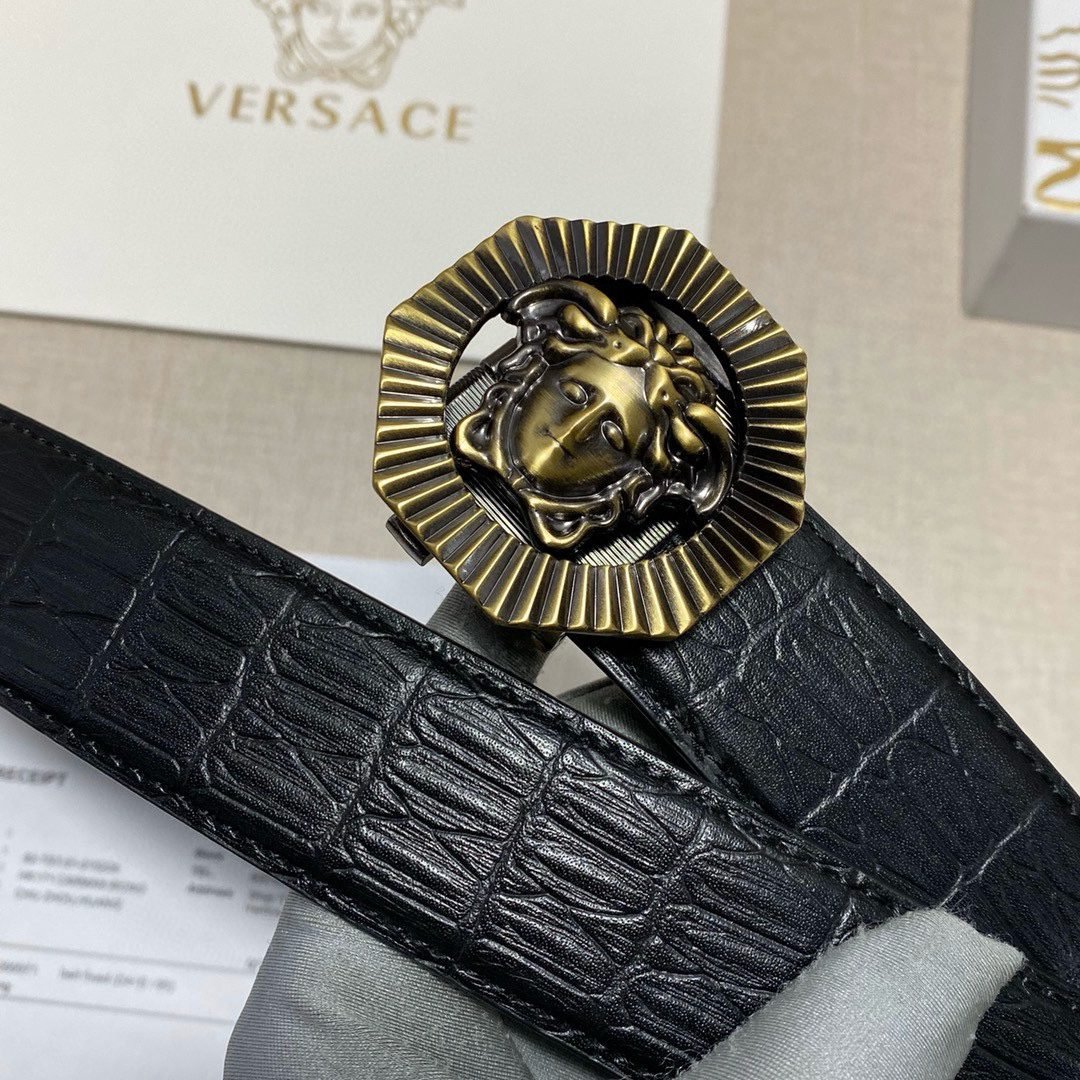 Home Belt VERSACE Belt Versace Round Buckle Black Texture Belt Classic Fashion Exquisite Elegance