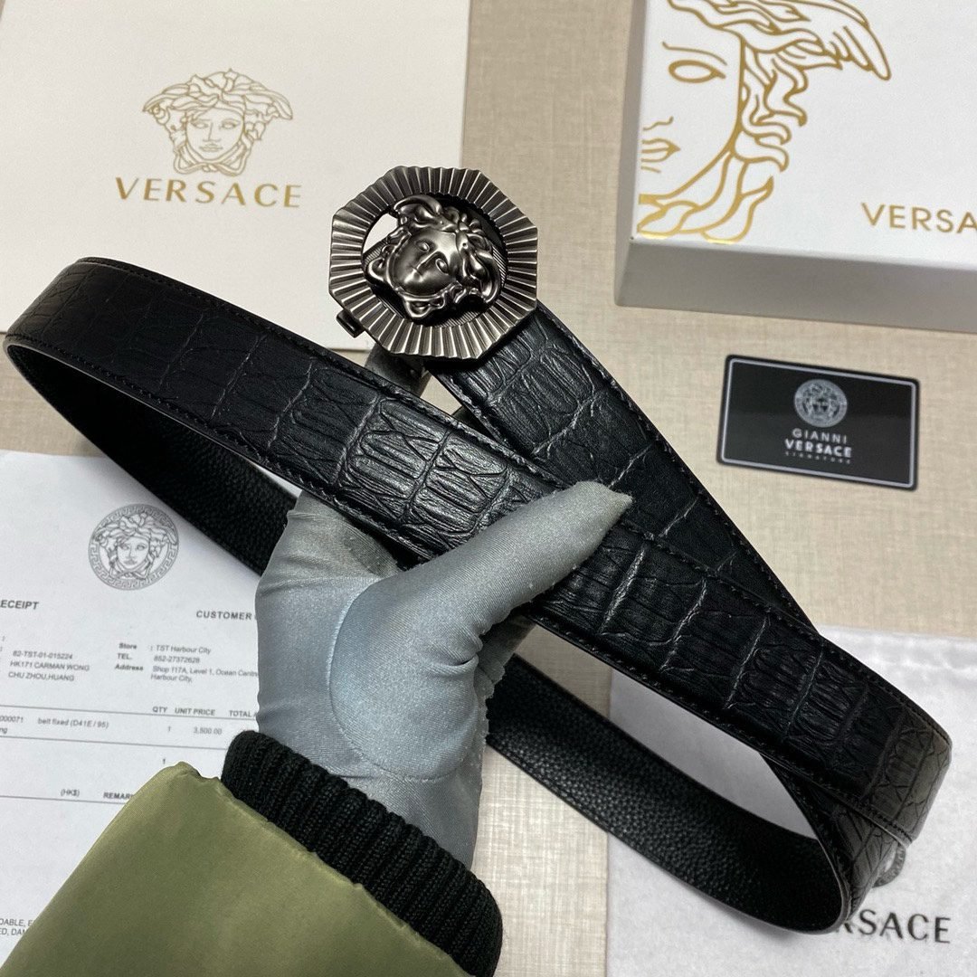 Versace Medusa Square Buckle Black Texture Belt Classic Fashion Exquisite Elegance