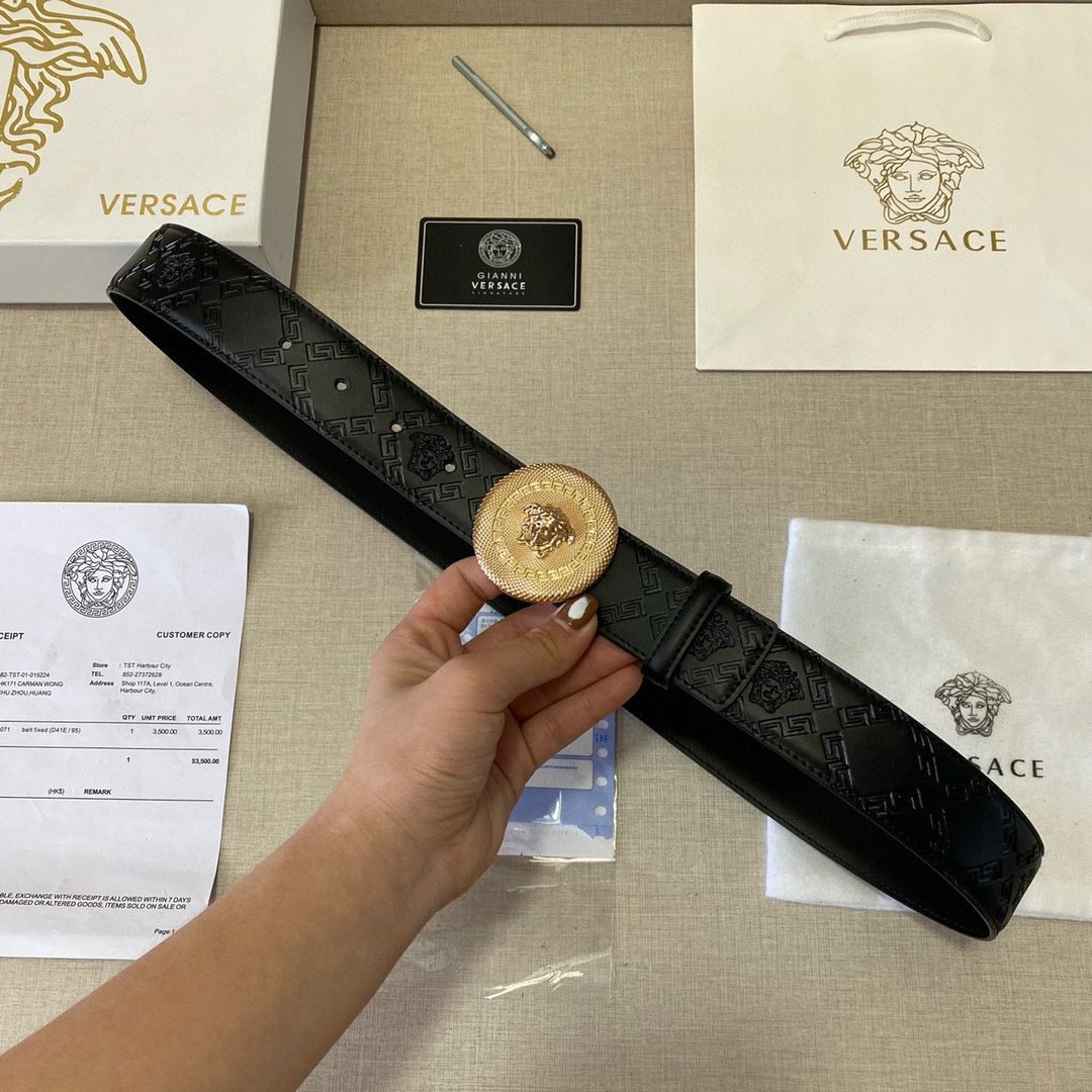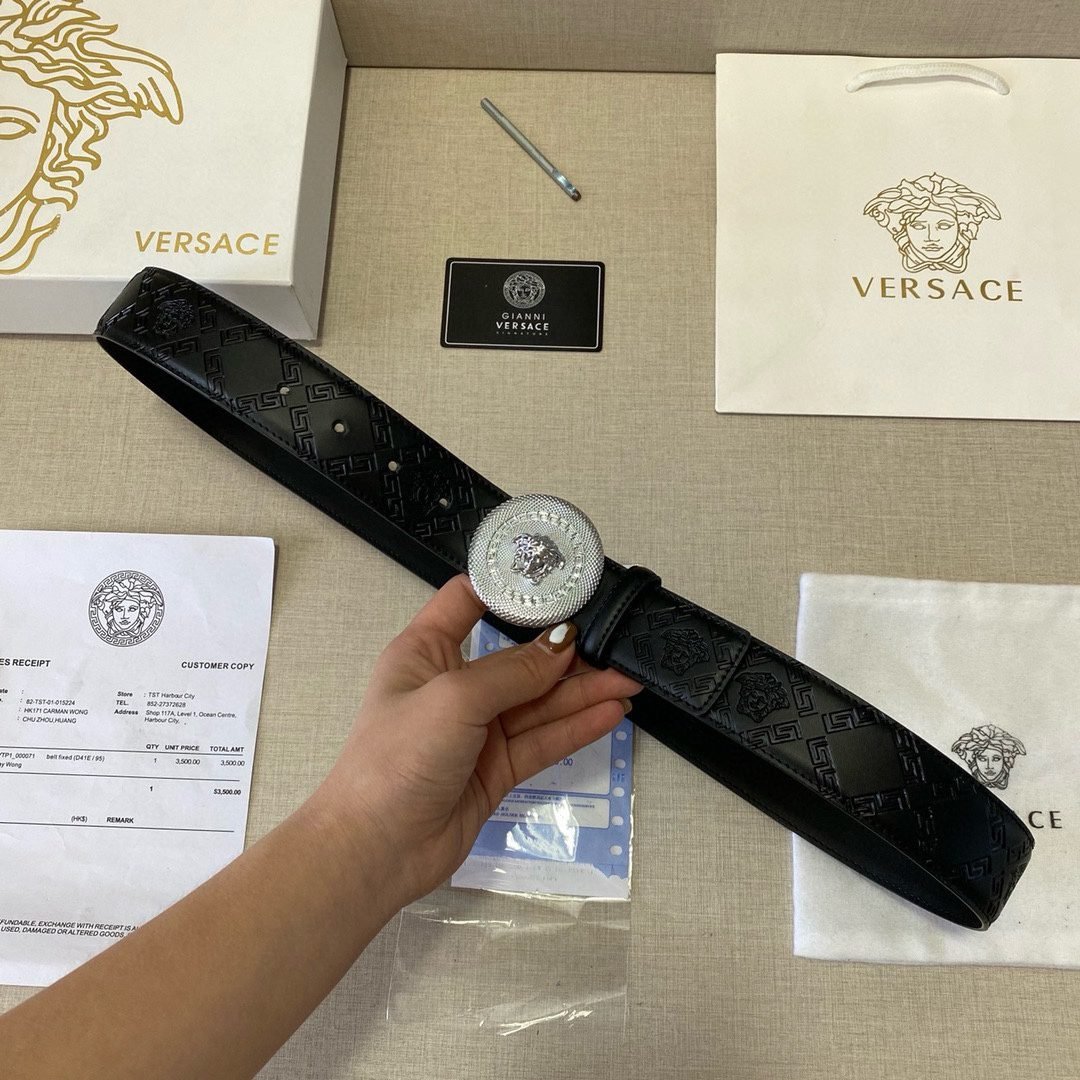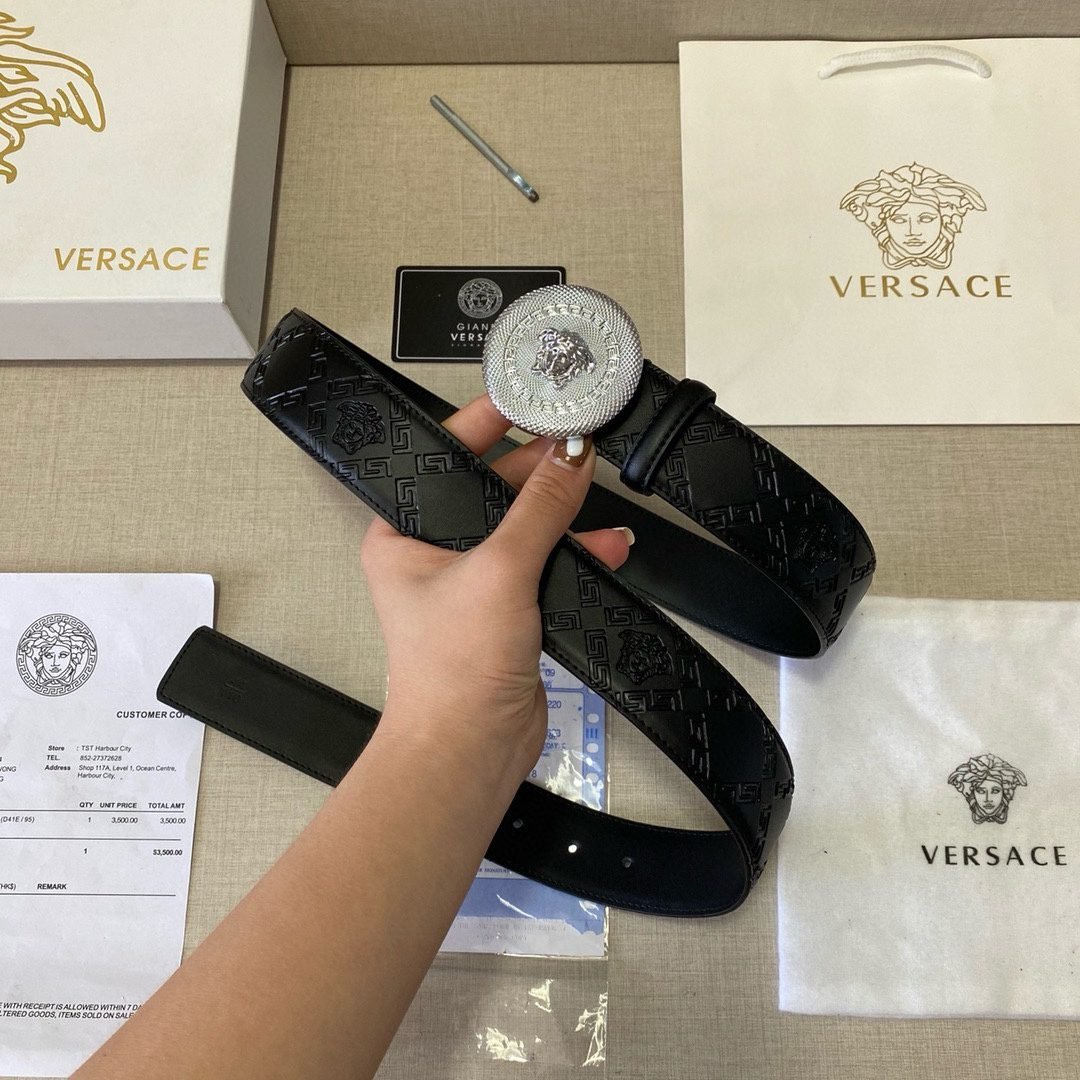 2.Classic design: The belt buckle is engraved with the “VERSACE” logo, showcasing the brand’s unique charm.