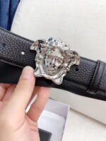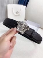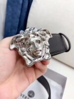 Be the first to review “Versace Silver Medusa Embossed Buckle Black Belt Simple and Elegant, Low key Luxury” Cancel reply