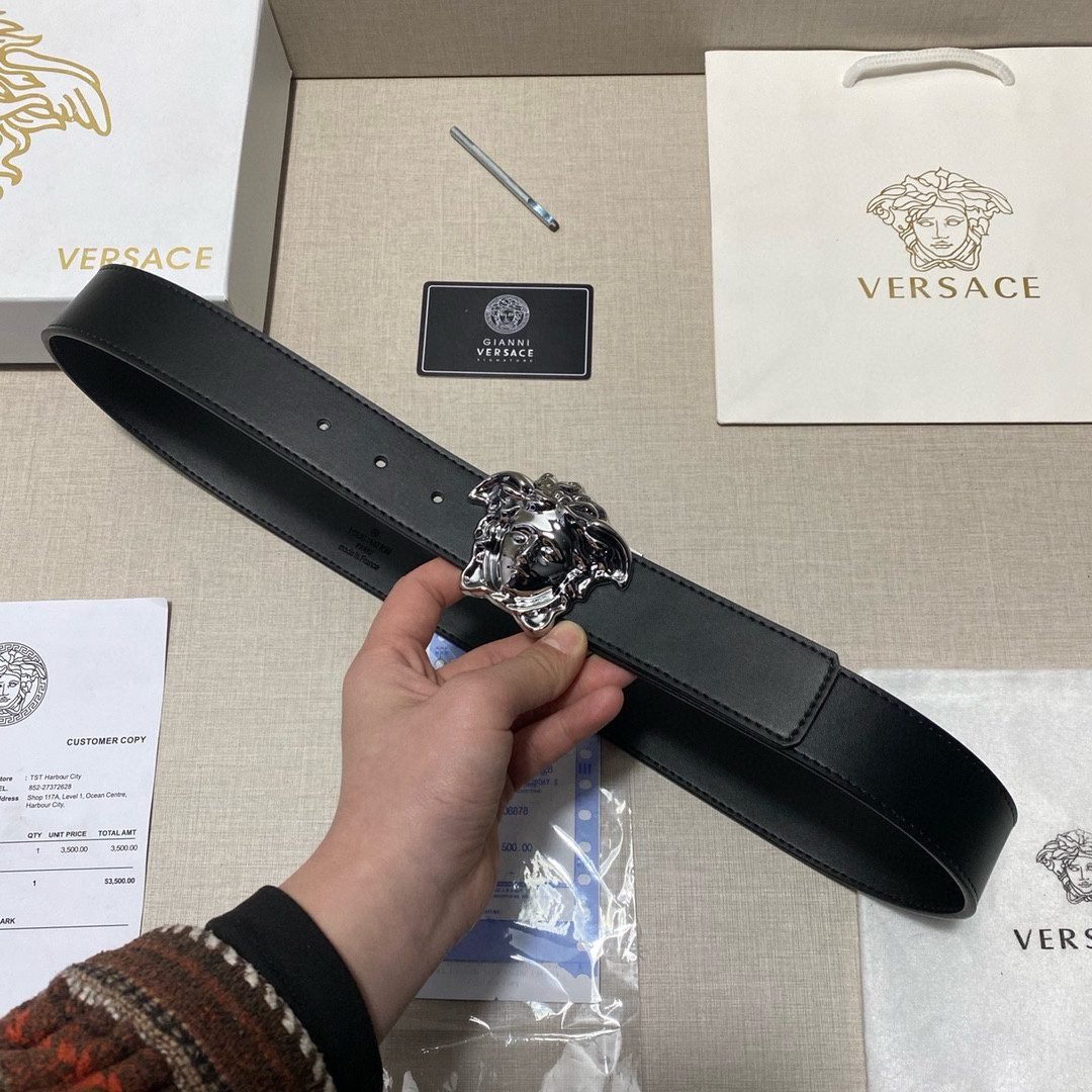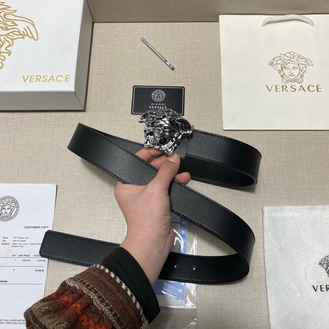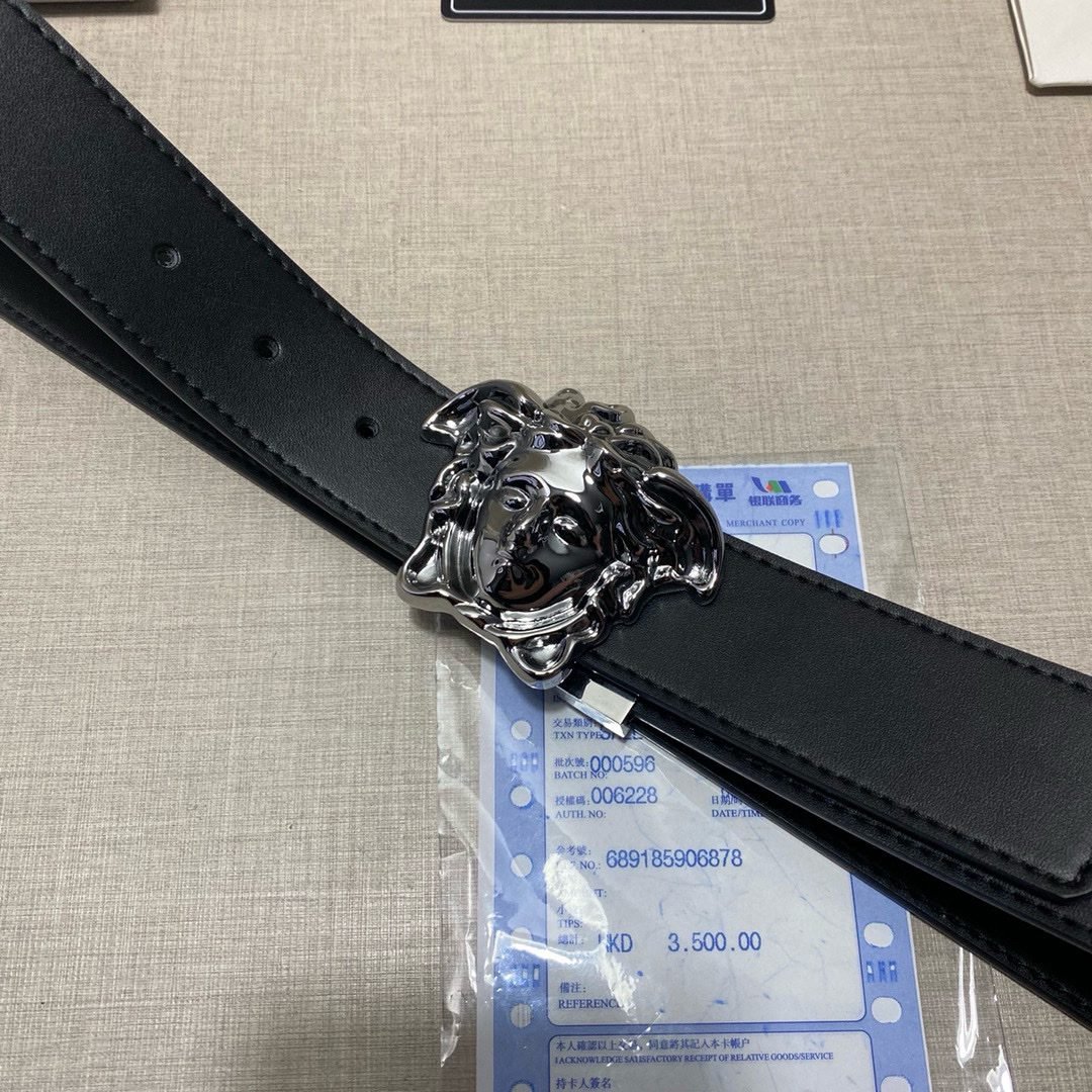 Home Belt VERSACE Belt Versace Silver Medusa Embossed Buckle Black Belt Simple and Elegant, Low key Luxury