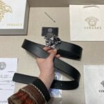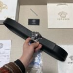Be the first to review “Versace Silver Medusa Embossed Buckle Black Belt Simple and Elegant, Low key Luxury” Cancel reply
