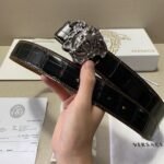 Home Belt VERSACE Belt Versace Silver Medusa Relief Ring Buckle Black Crocodile Pattern Belt Simple, Elegant and Exquisite