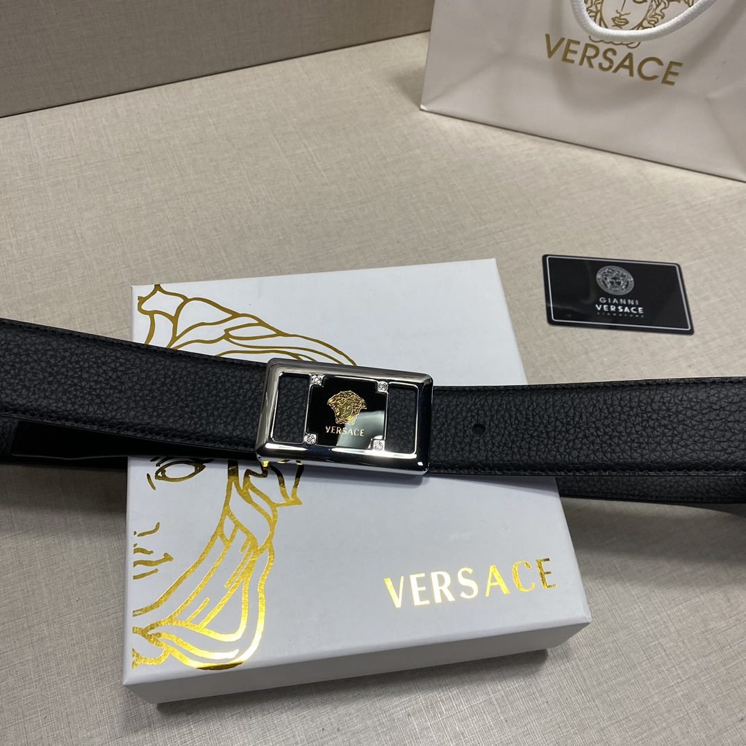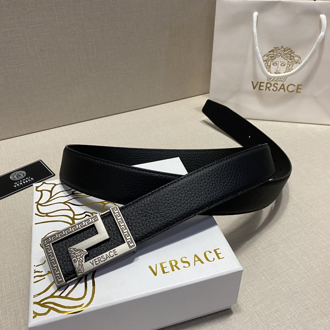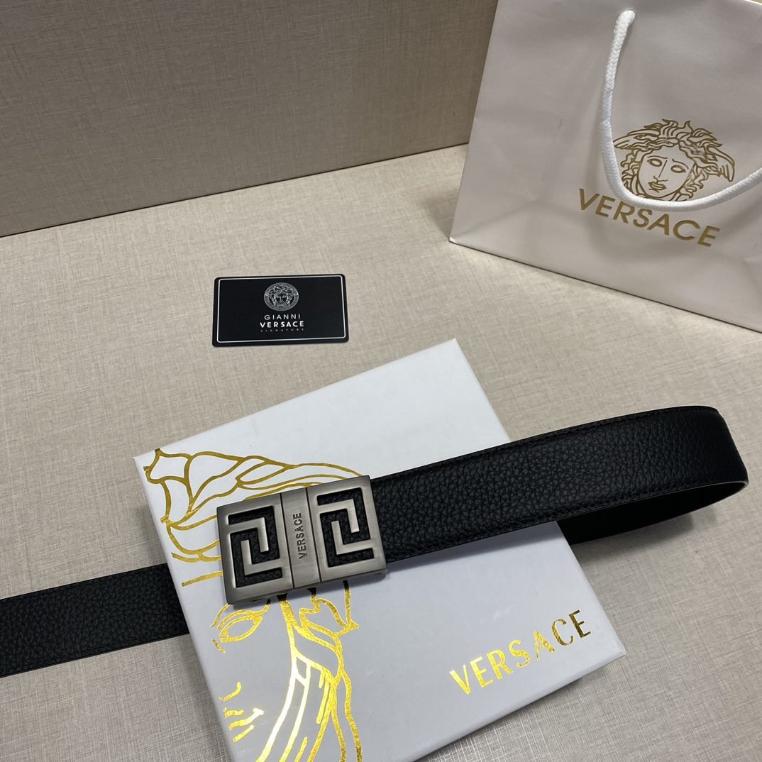 Versace Silver Square Buckle Black Belt Simple and Elegant, Low key Luxury