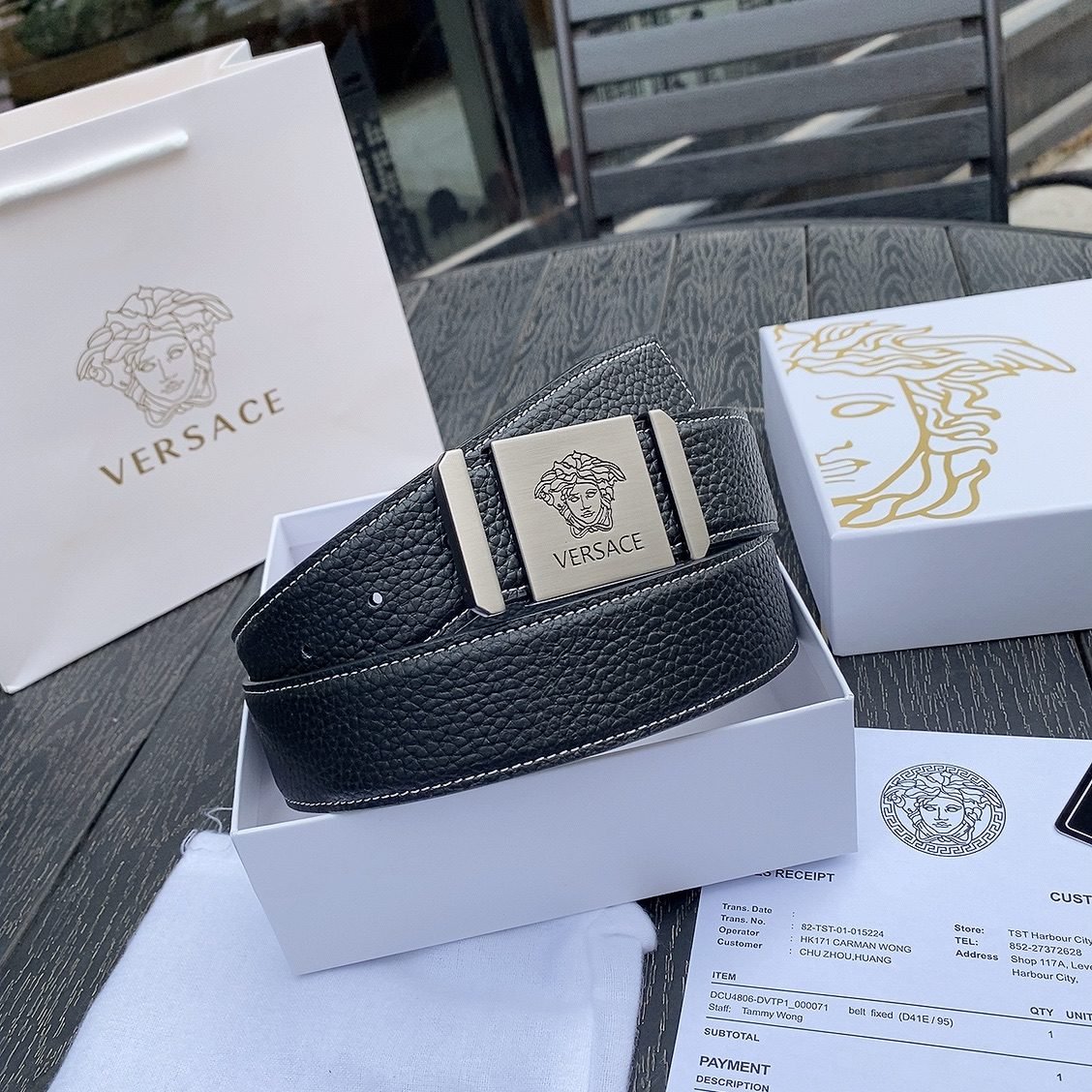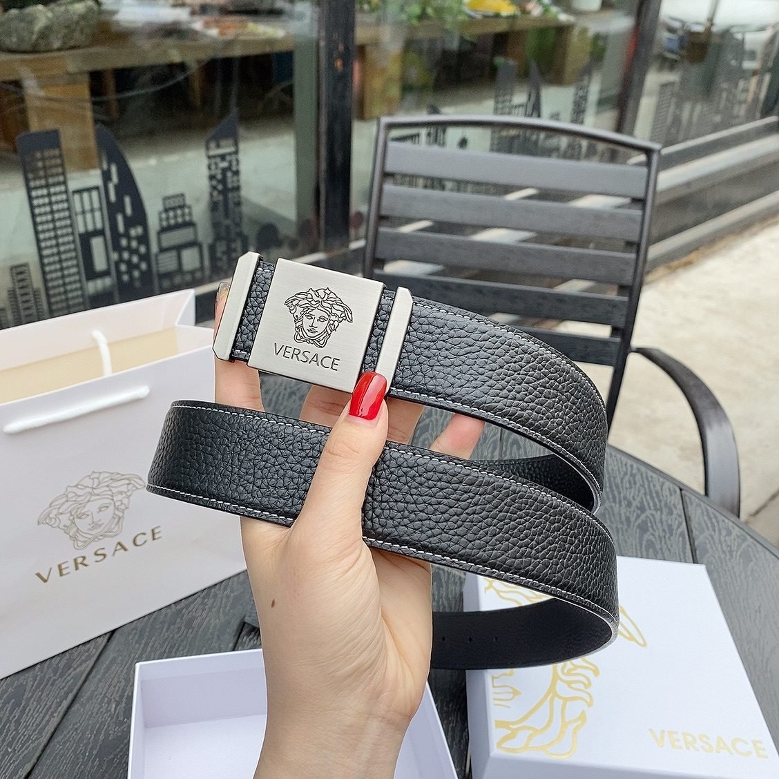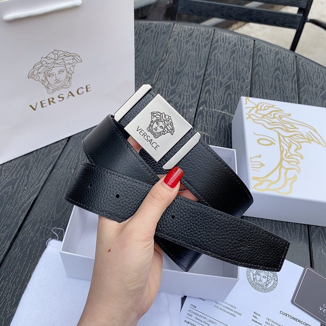 Be the first to review “Versace Silver Square Buckle Black Belt Simple and Elegant, Low key Luxury” Cancel reply
