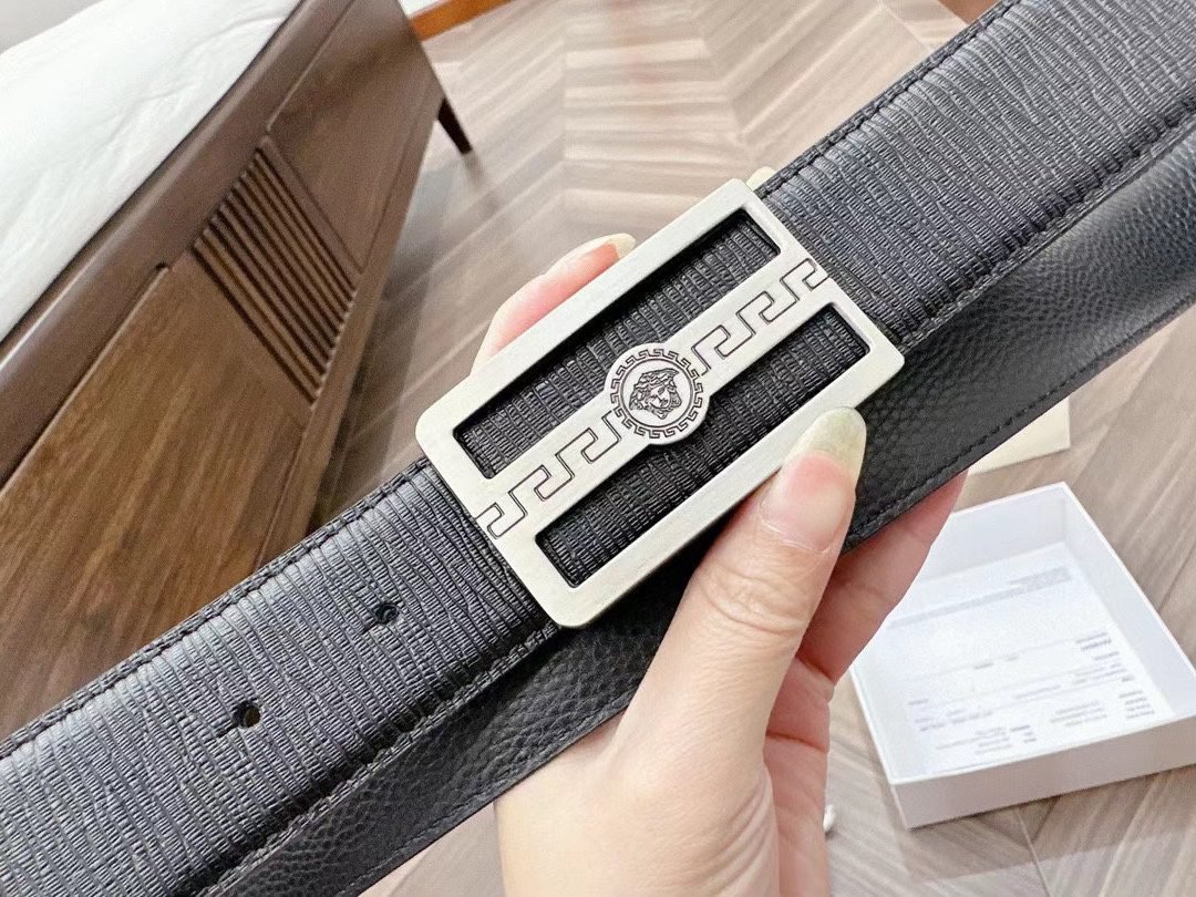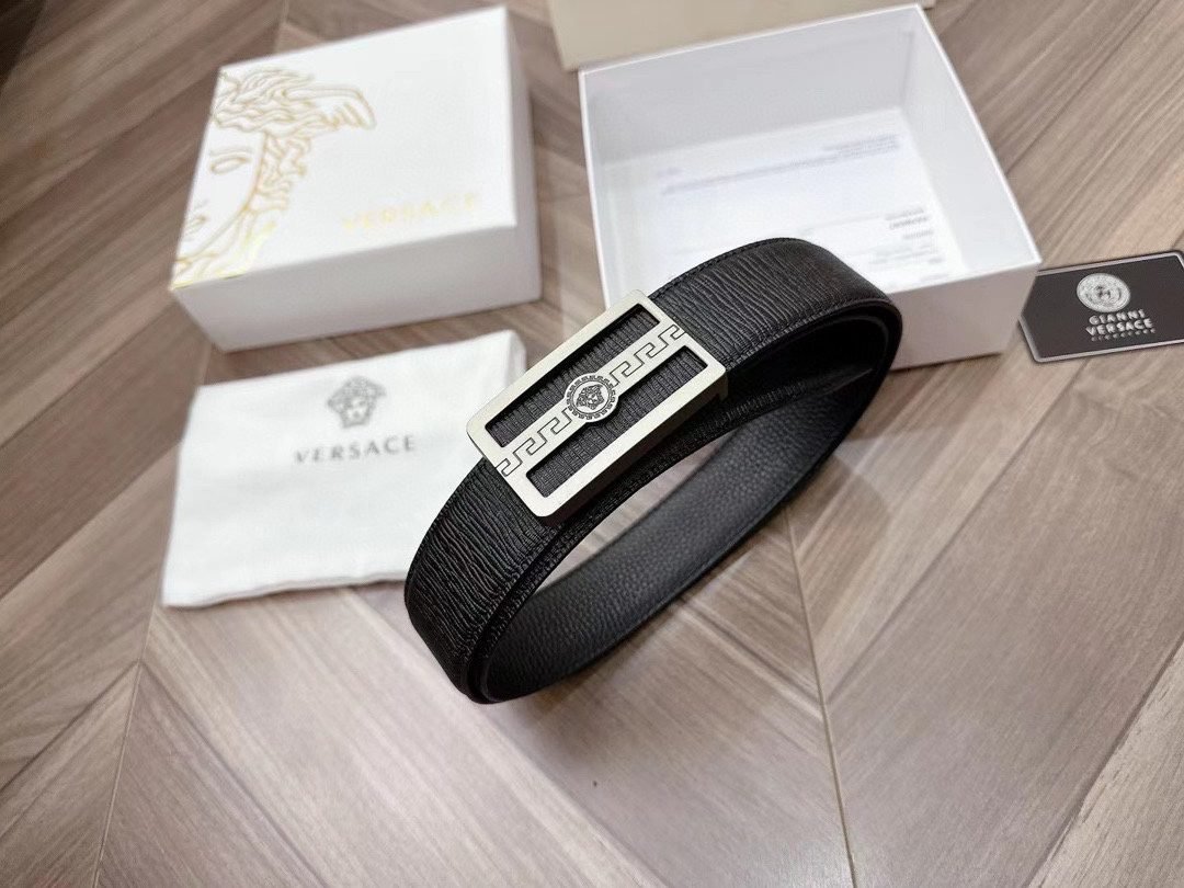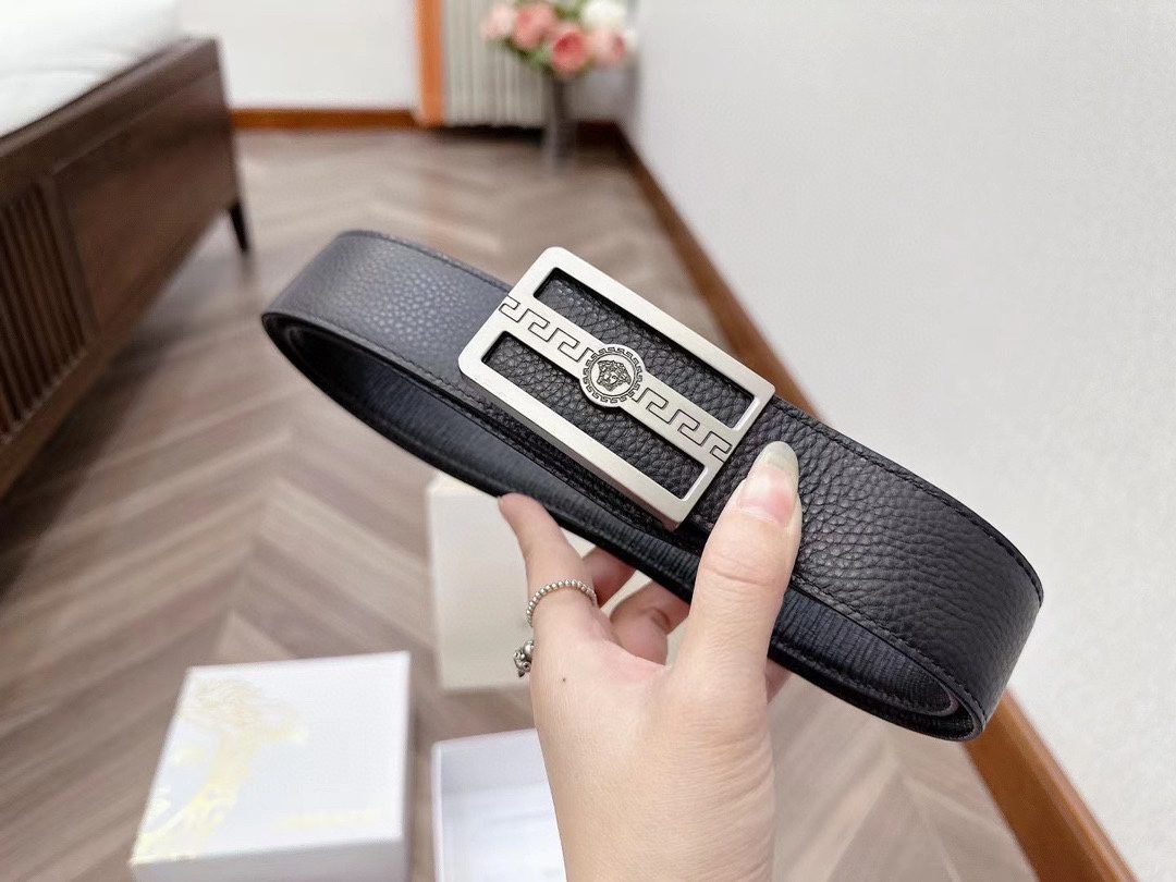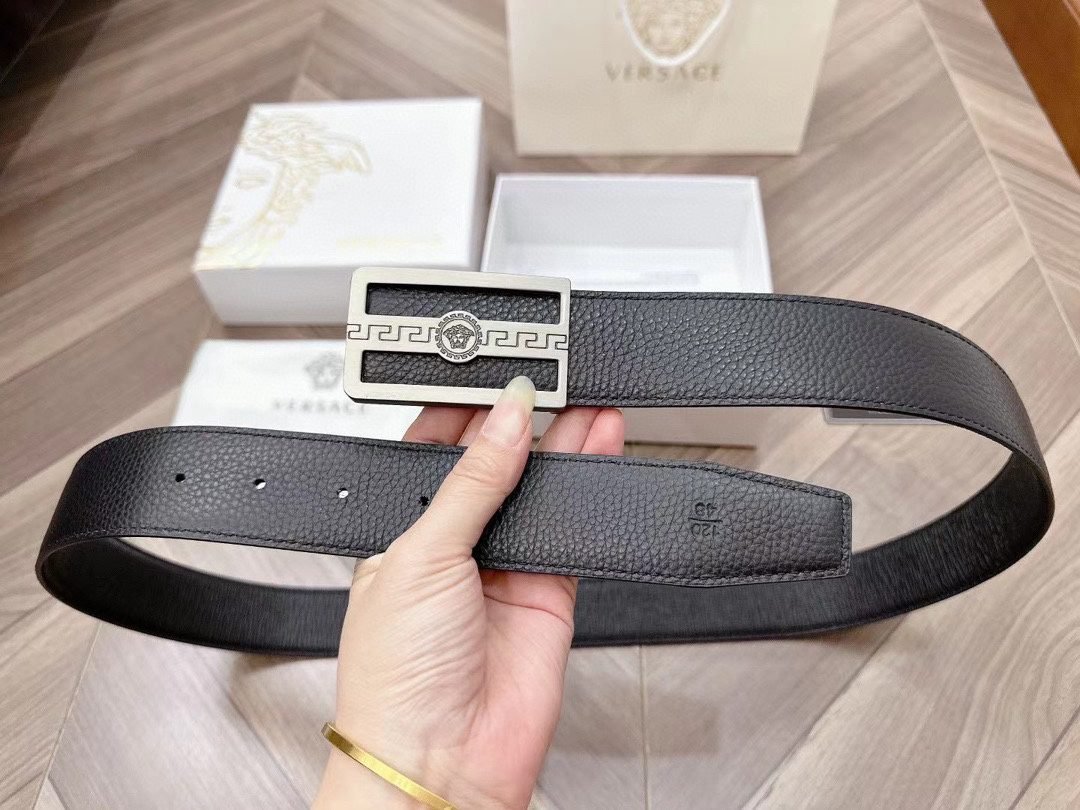 Home Belt VERSACE Belt Versace Silver Square Buckle Black Belt Simple, Fashionable, Noble, and Elegant