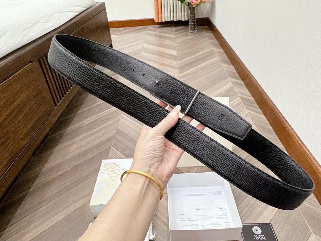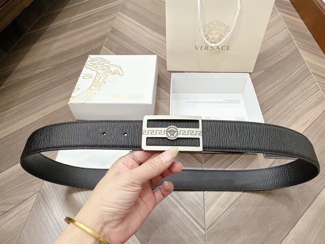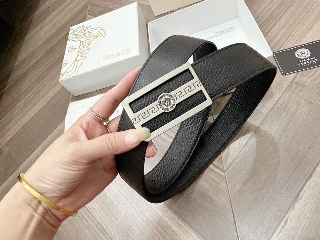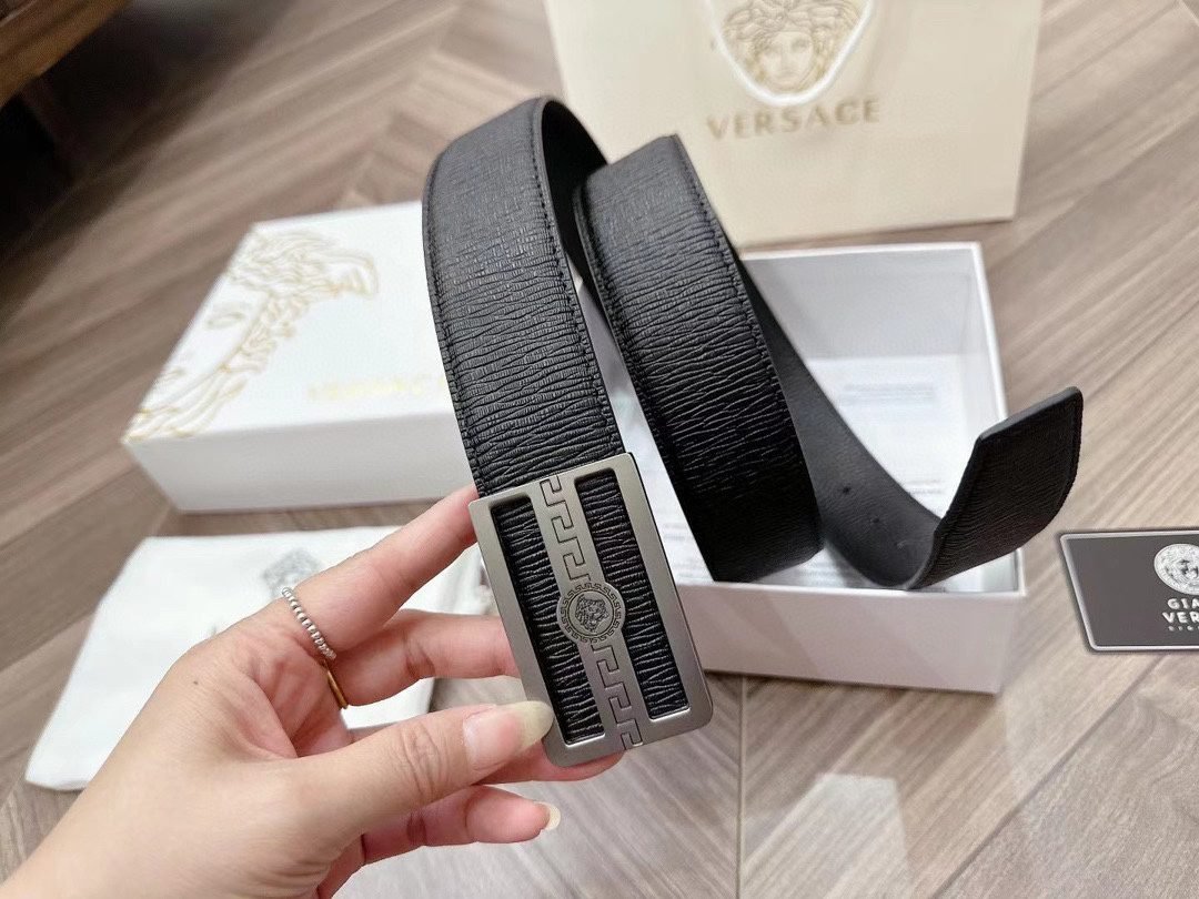 Home Belt VERSACE Belt Versace Silver Square Buckle Black Belt Simple, Fashionable, Noble, and Elegant