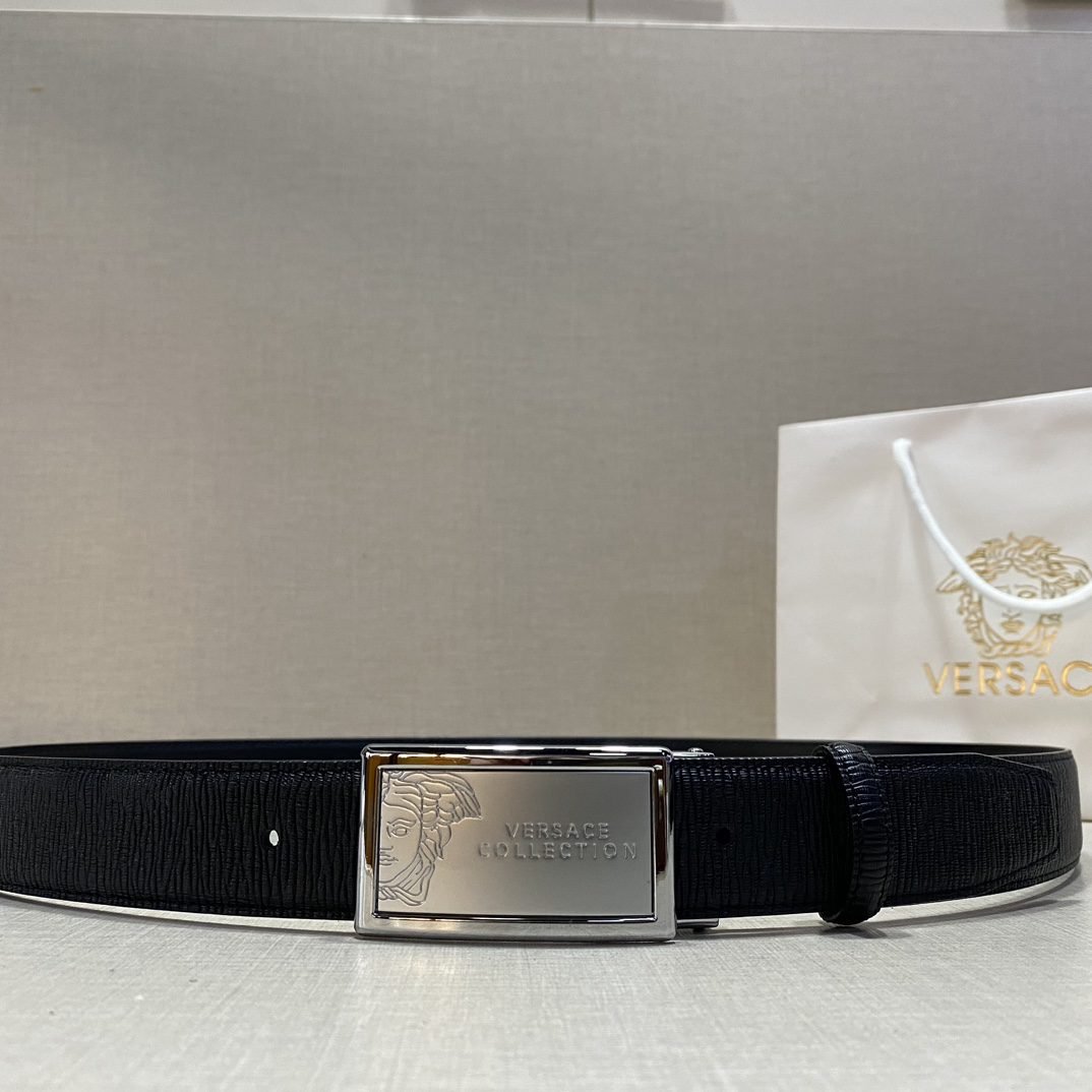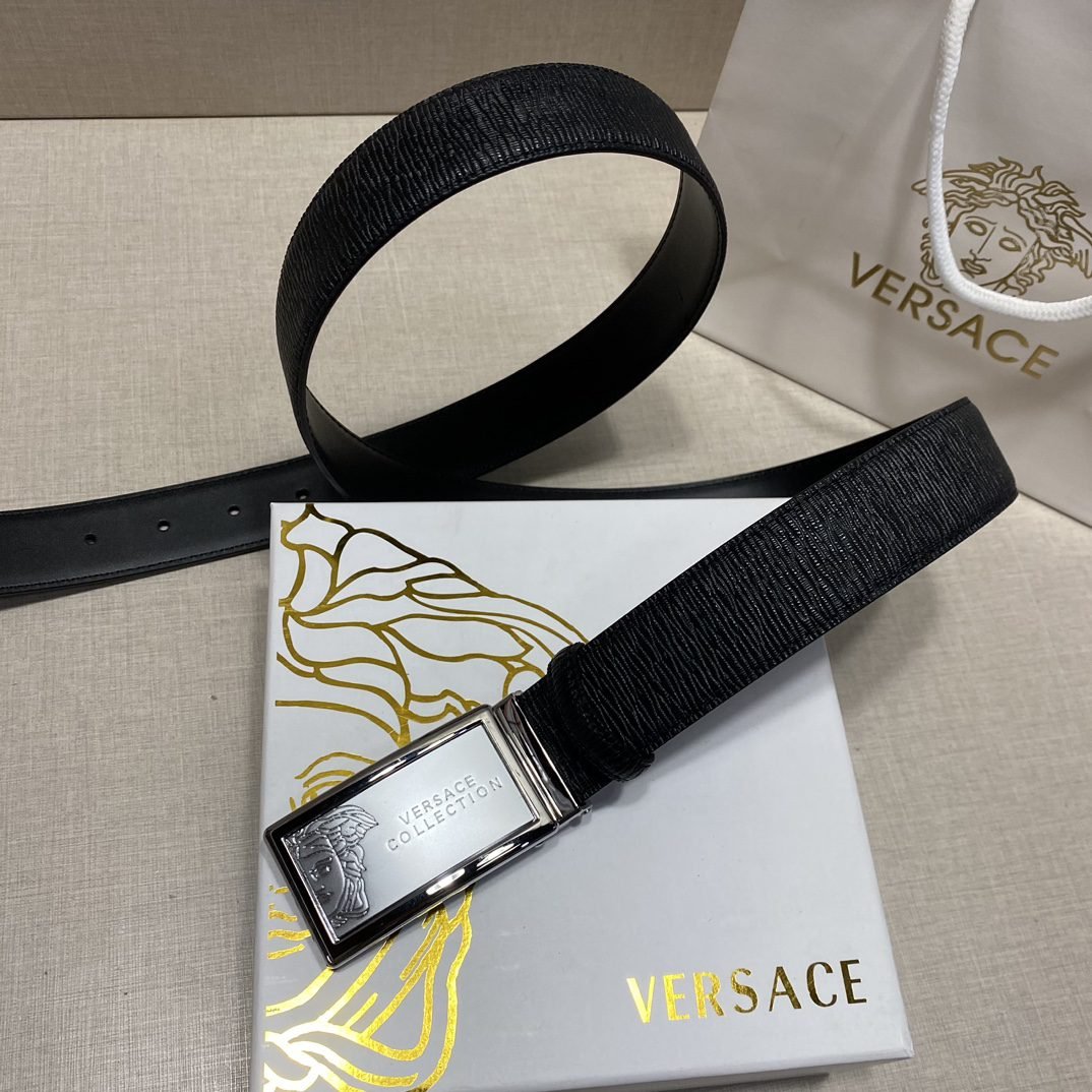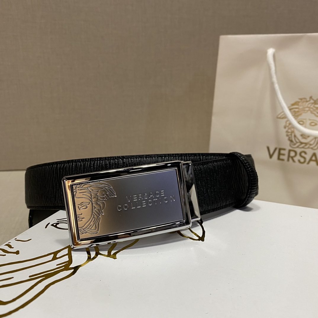 Home Belt VERSACE Belt Versace Silver Square Buckle Black Texture Belt Classic Fashion Exquisite Elegance