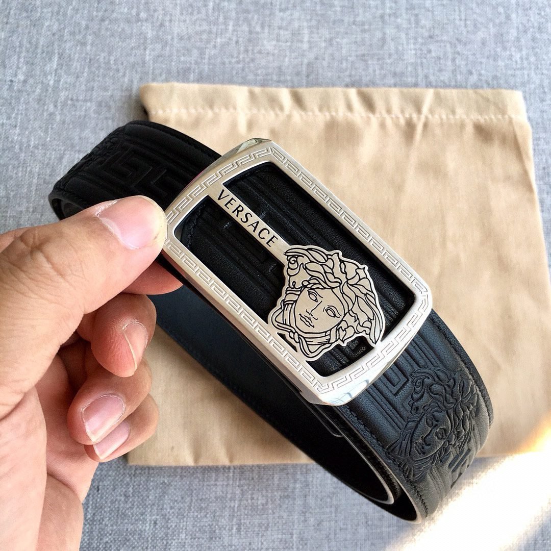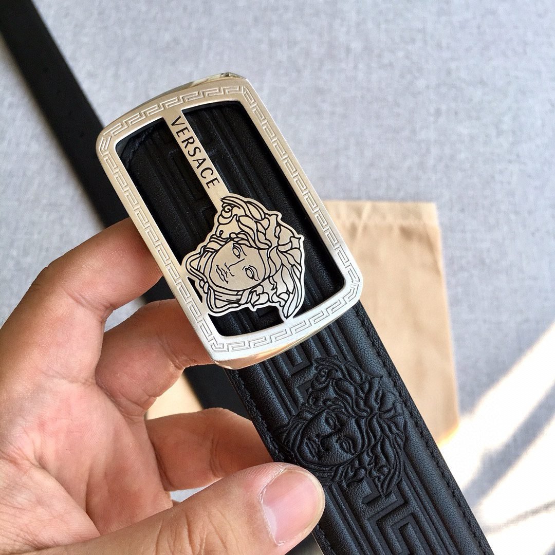 Home Belt VERSACE Belt Versace silver square buckle with black texture belt, simple, atmospheric, exquisite and elegant