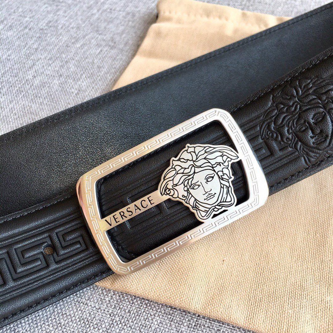Versace silver square buckle with black texture belt, simple, atmospheric, exquisite and elegant