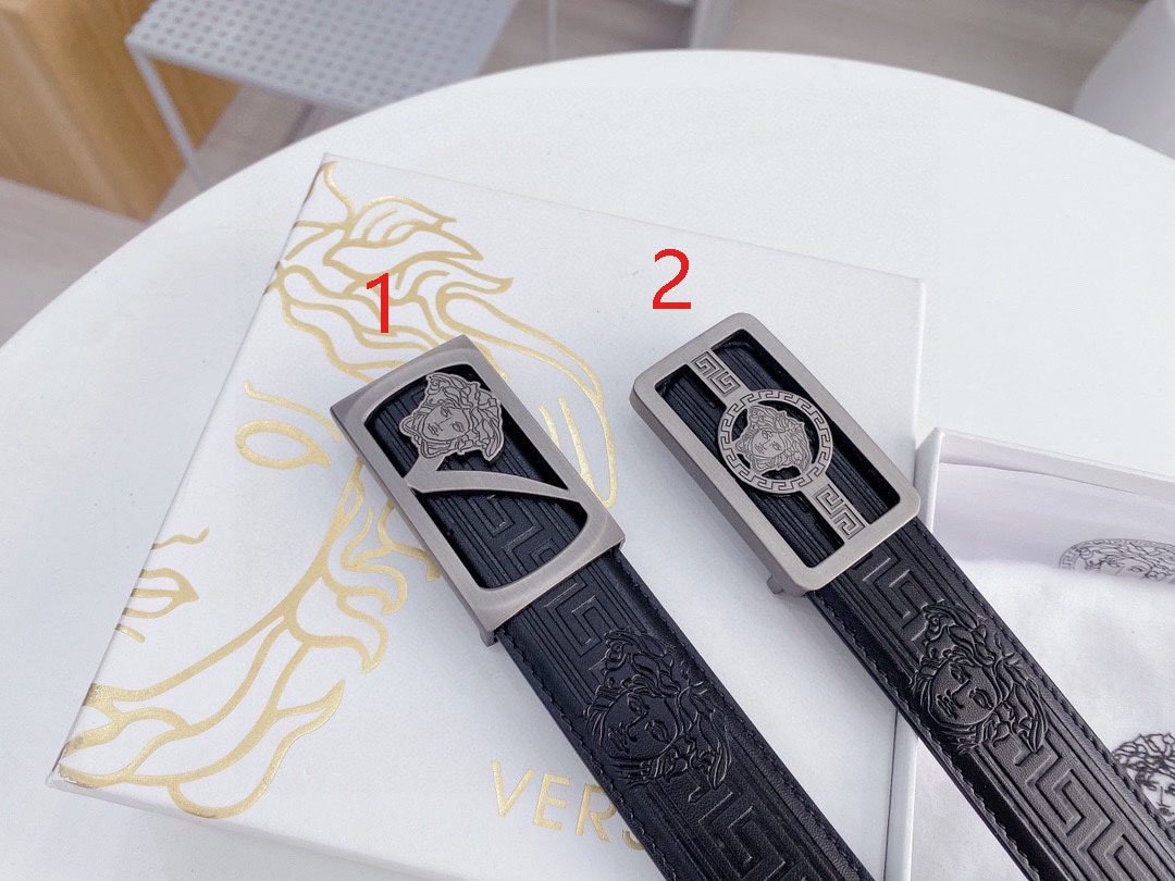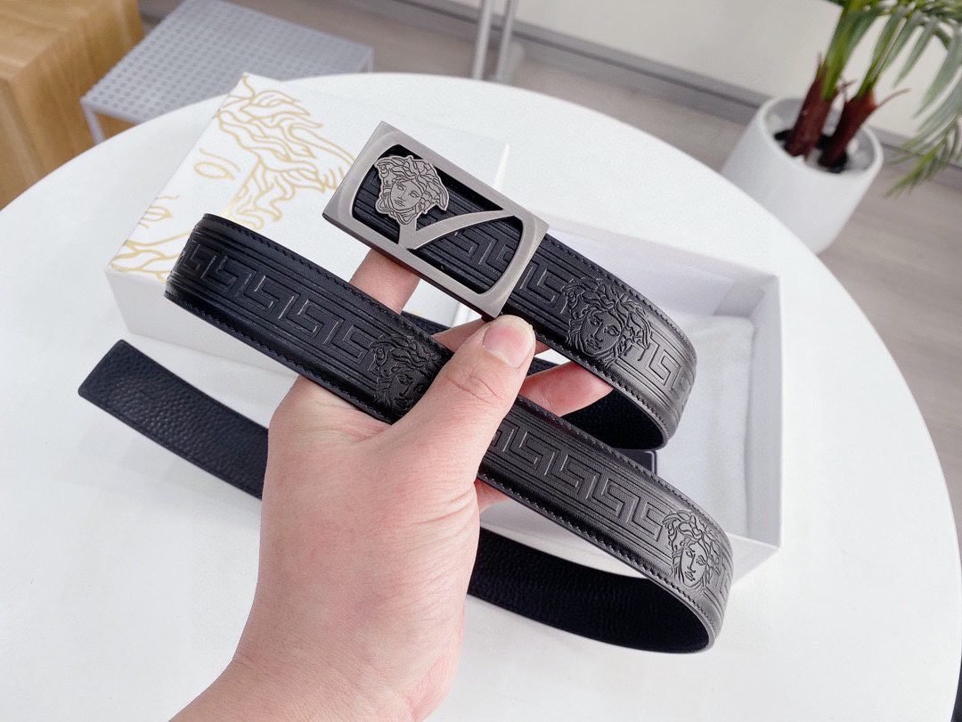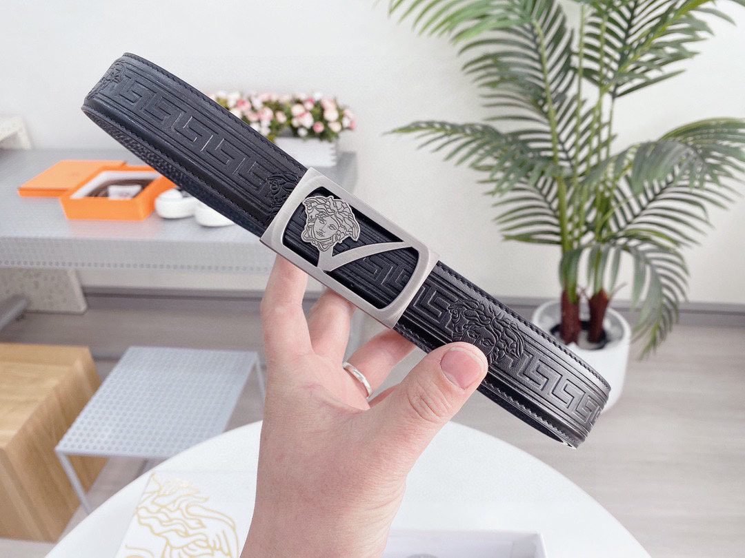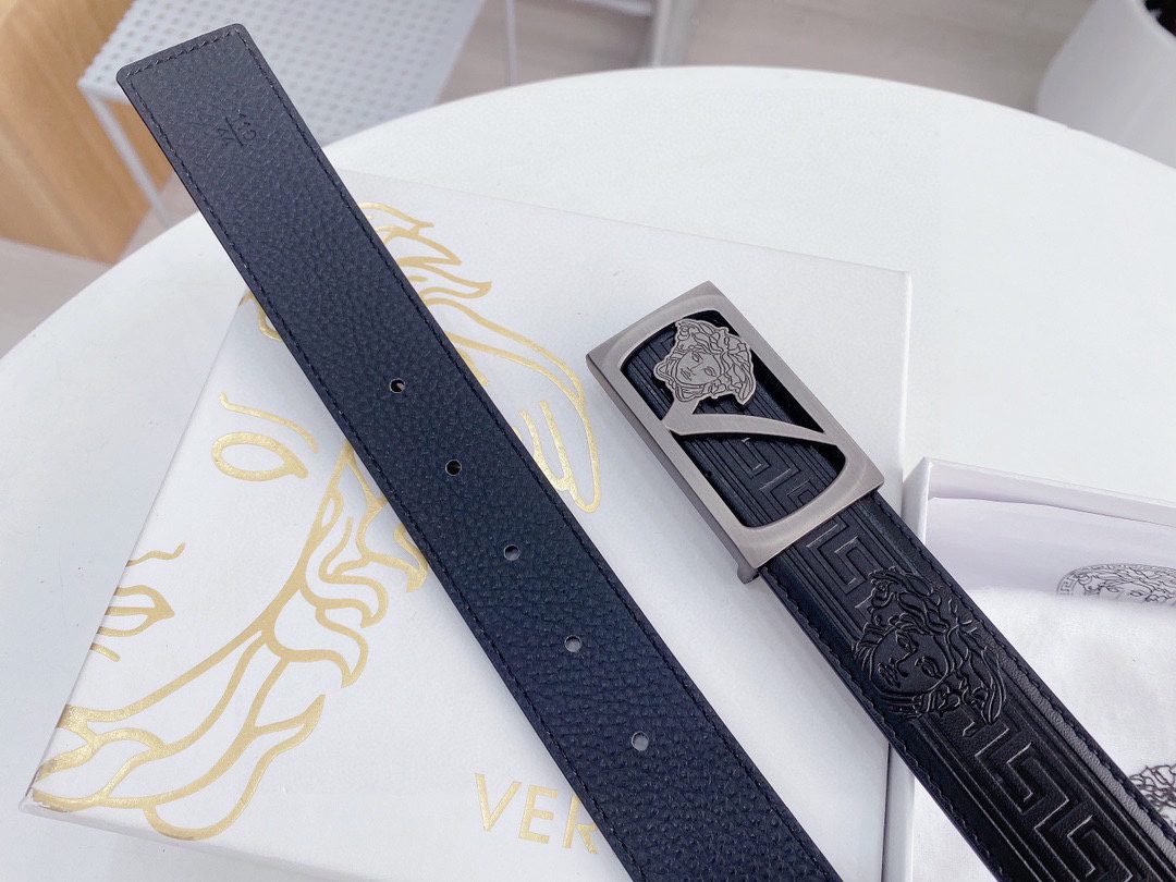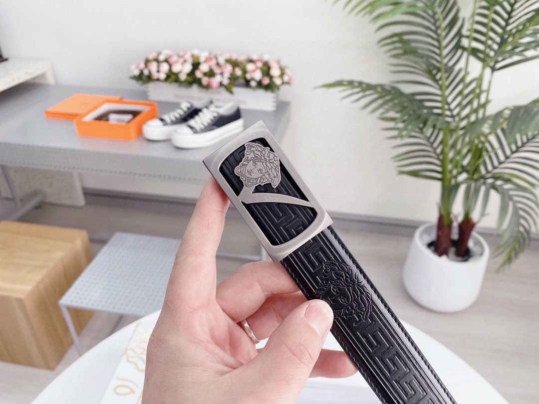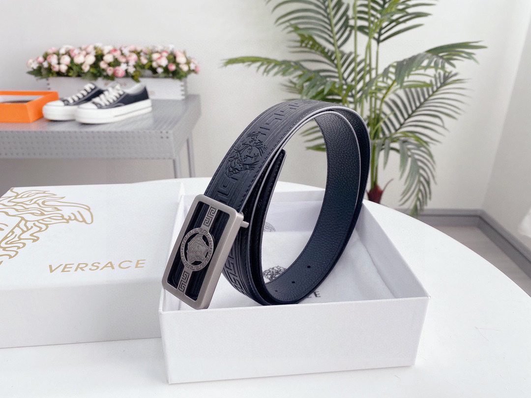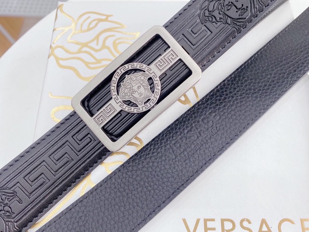 Home Belt VERSACE Belt Versace silver square buckle with black texture belt, simple, fashionable, noble, and elegant