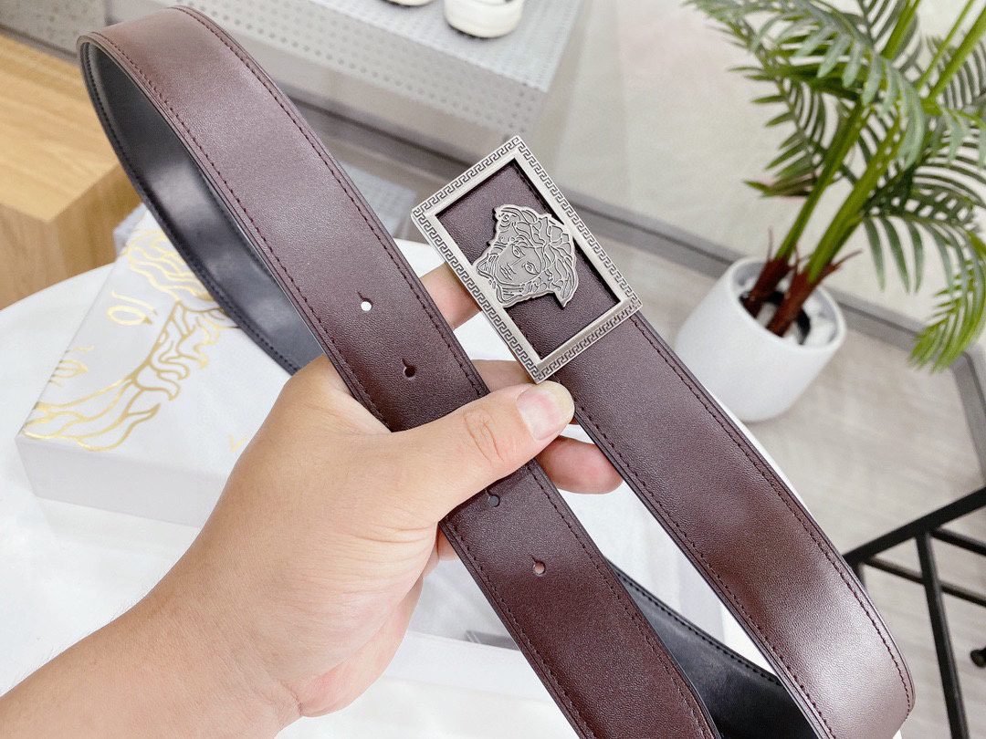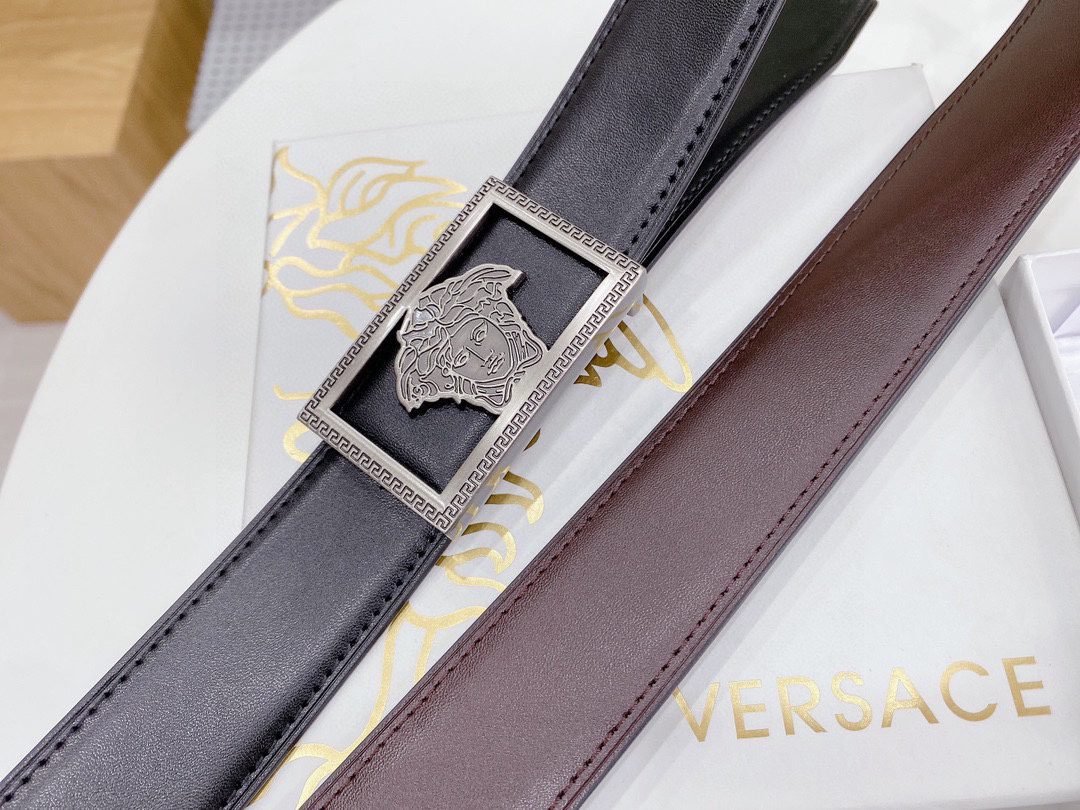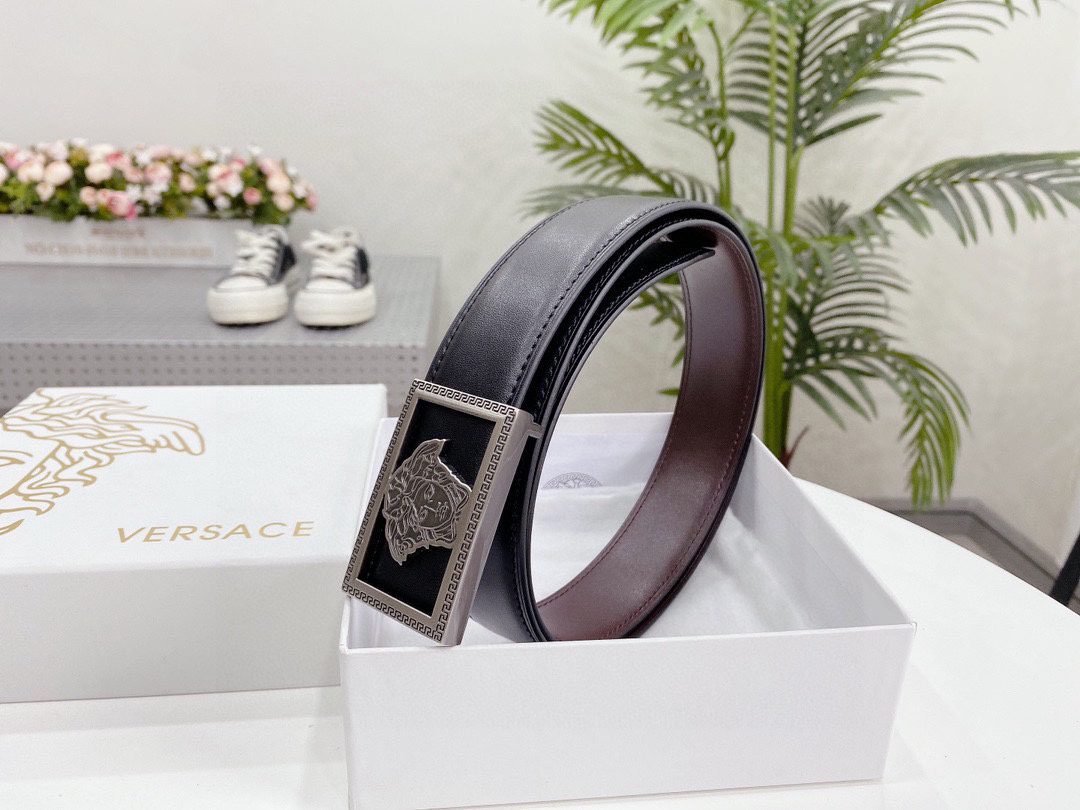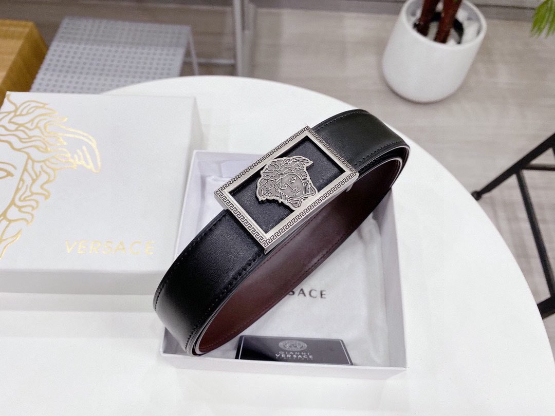 Home Belt VERSACE Belt Versace silver square buckle with double-sided usable belt, simple and elegant, classic and fashionable
