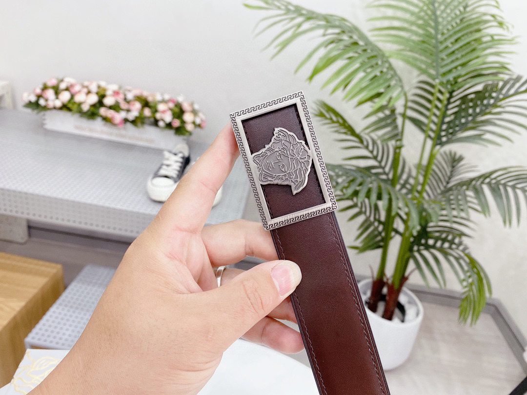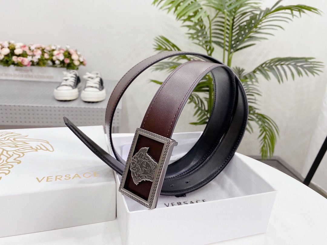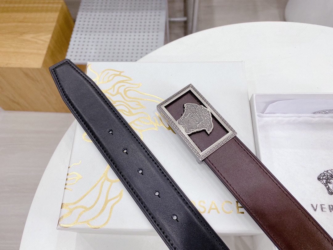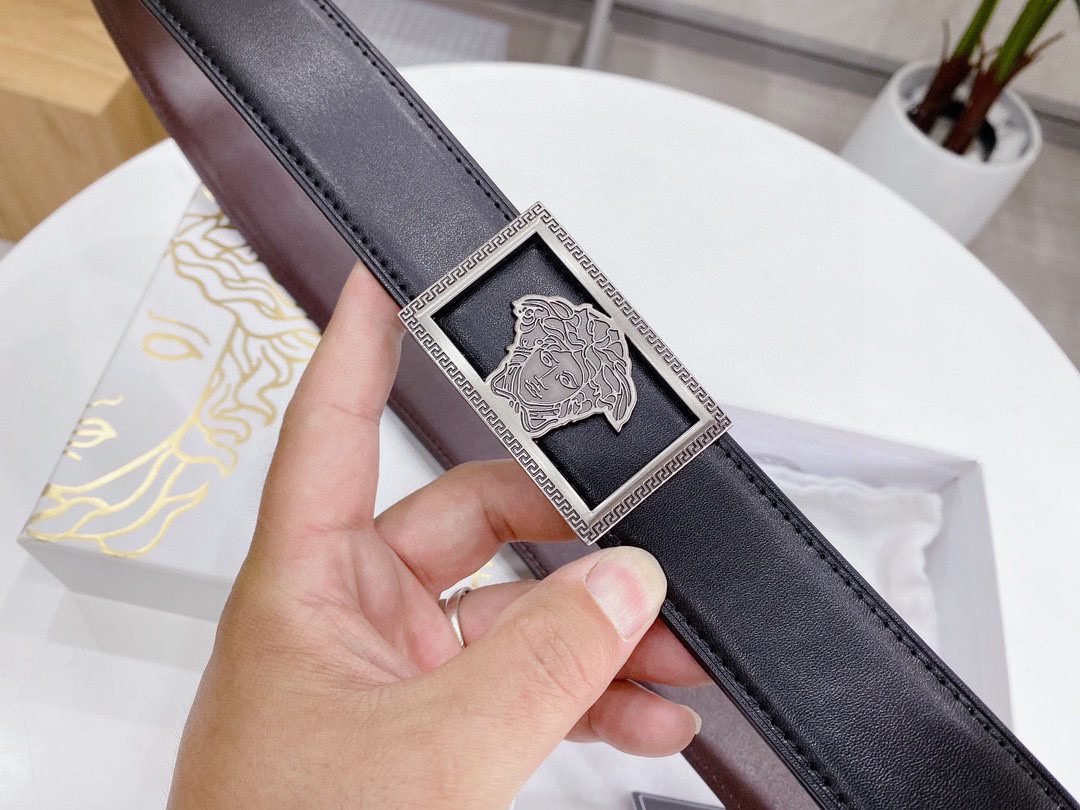 Home Belt VERSACE Belt Versace silver square buckle with double-sided usable belt, simple and elegant, classic and fashionable