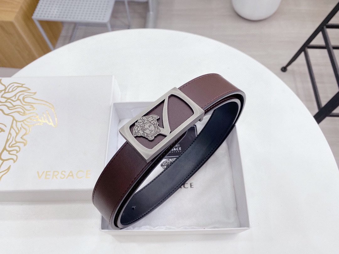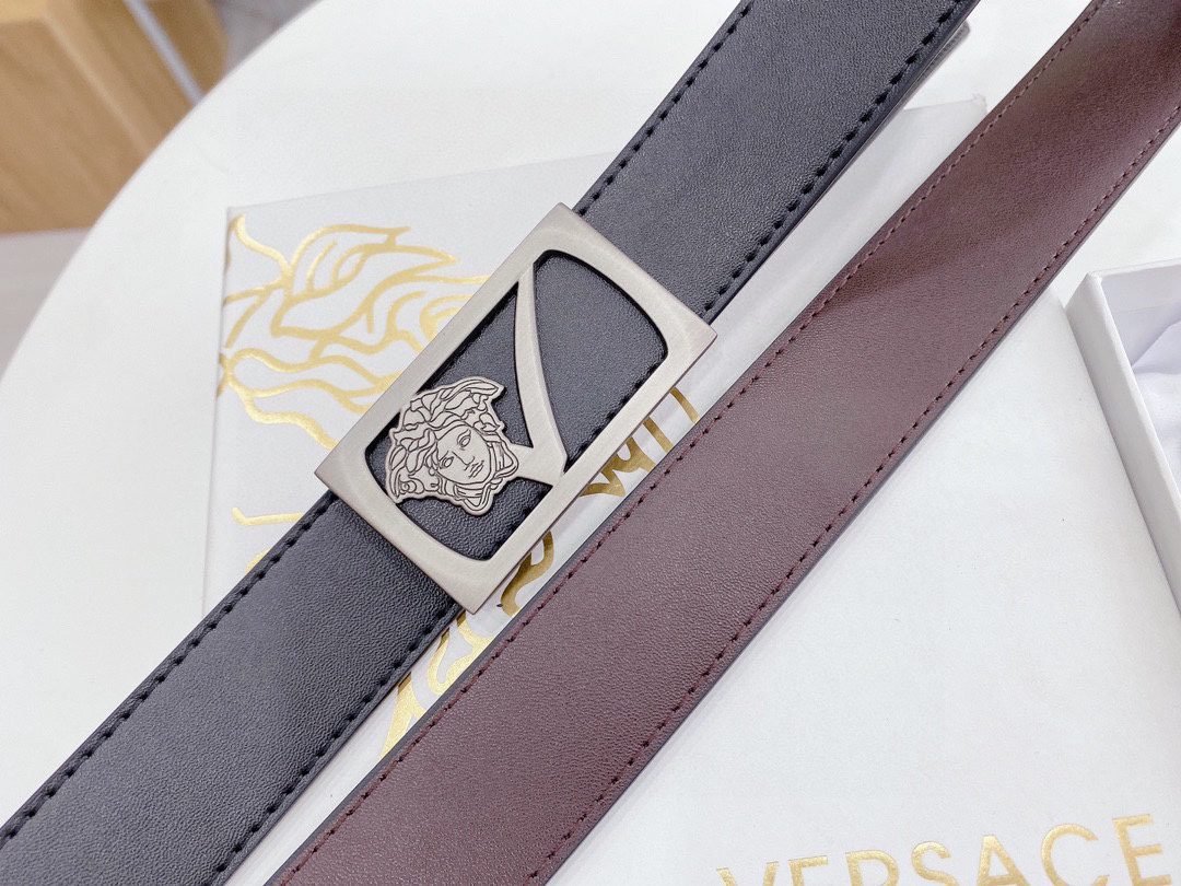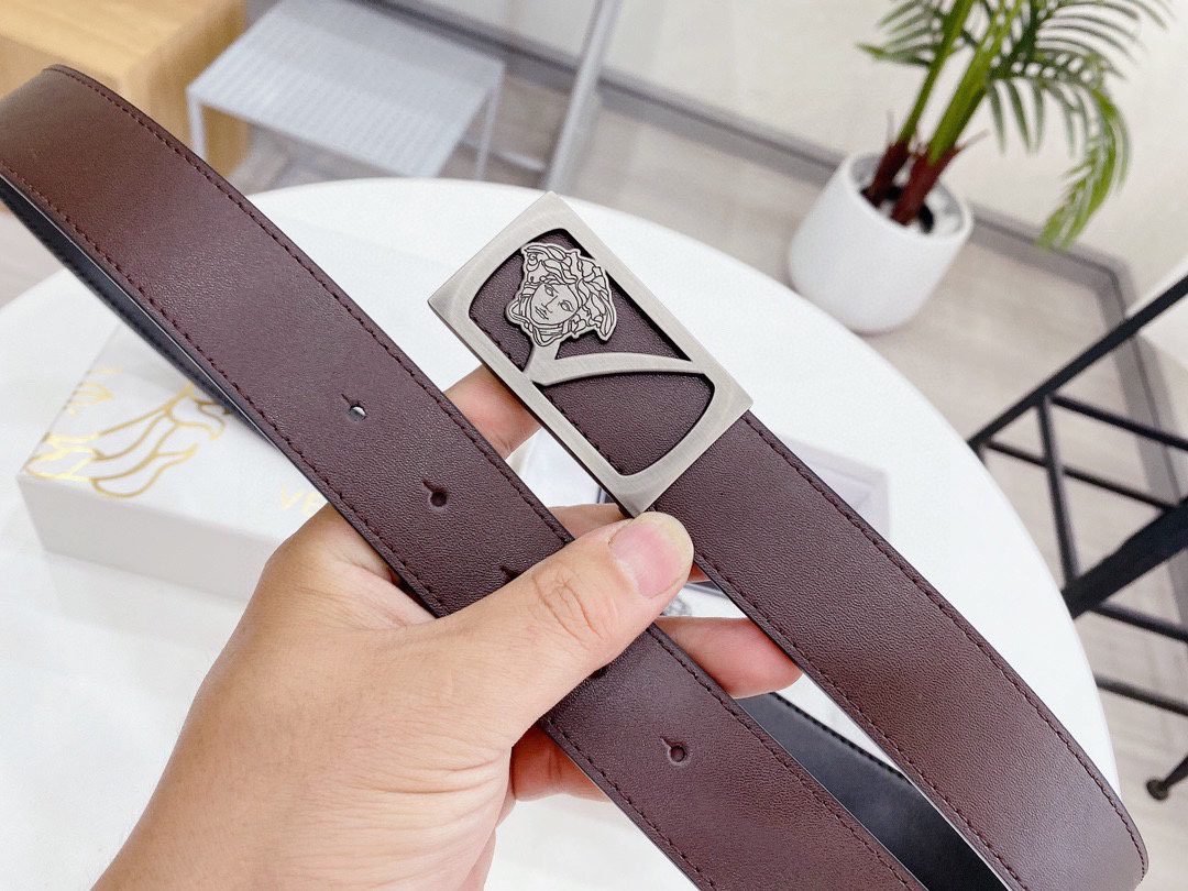 Home Belt VERSACE Belt Versace silver square buckle with double-sided usable belt, simple and elegant, classic and fashionable