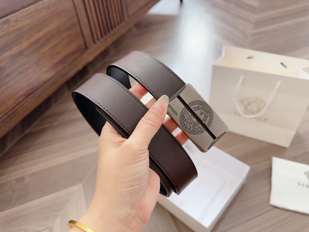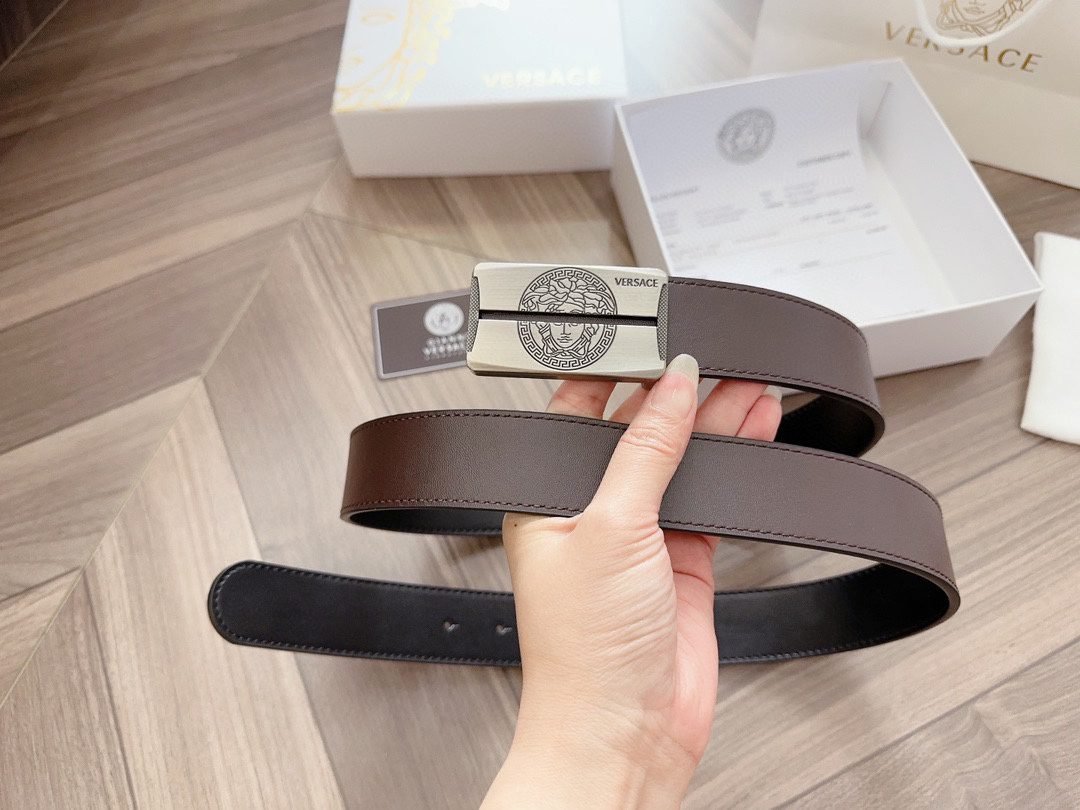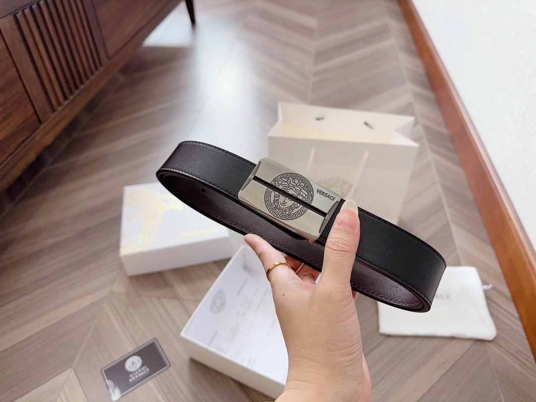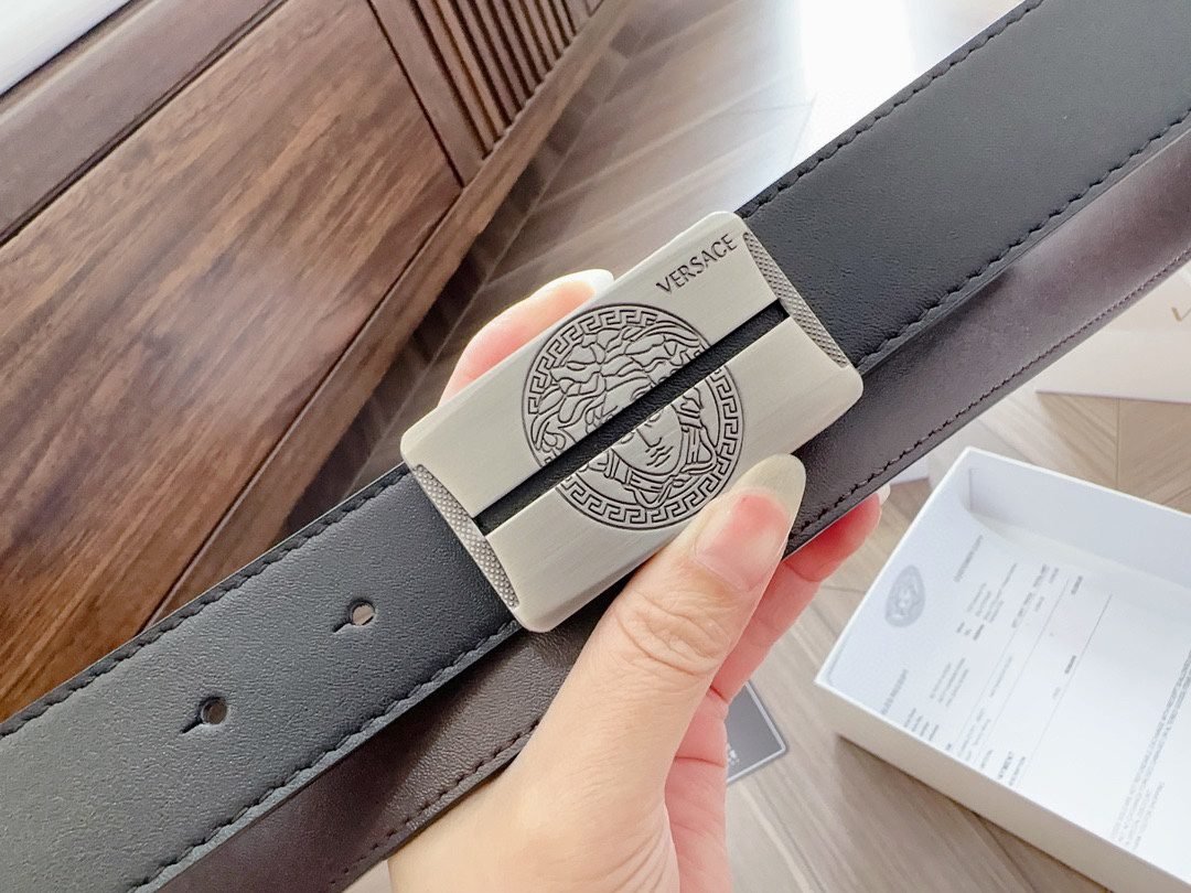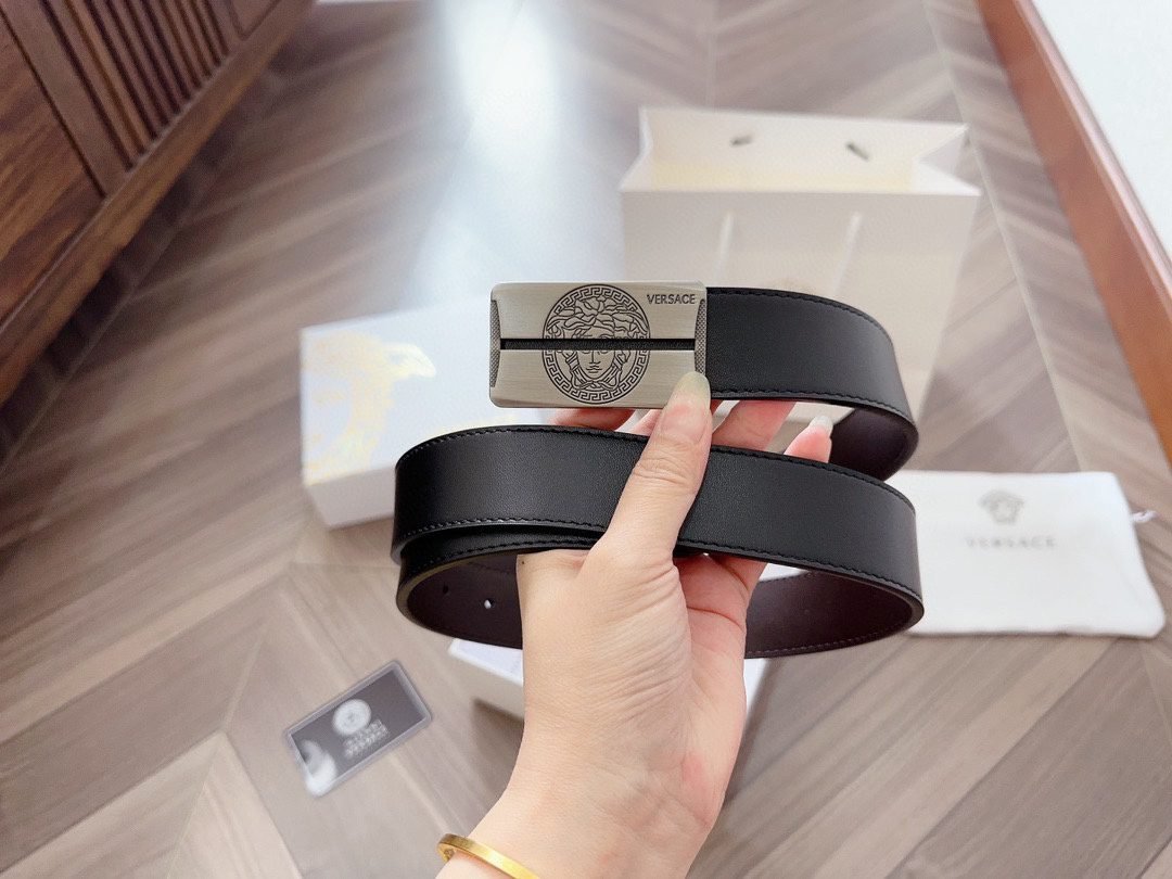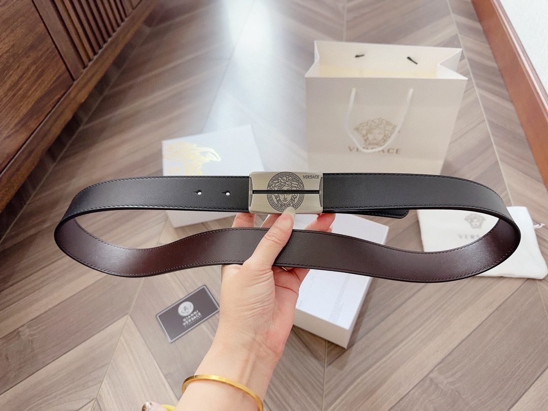 Home Belt VERSACE Belt Versace silver square buckle with double-sided usable belt, simple, atmospheric, exquisite and elegant