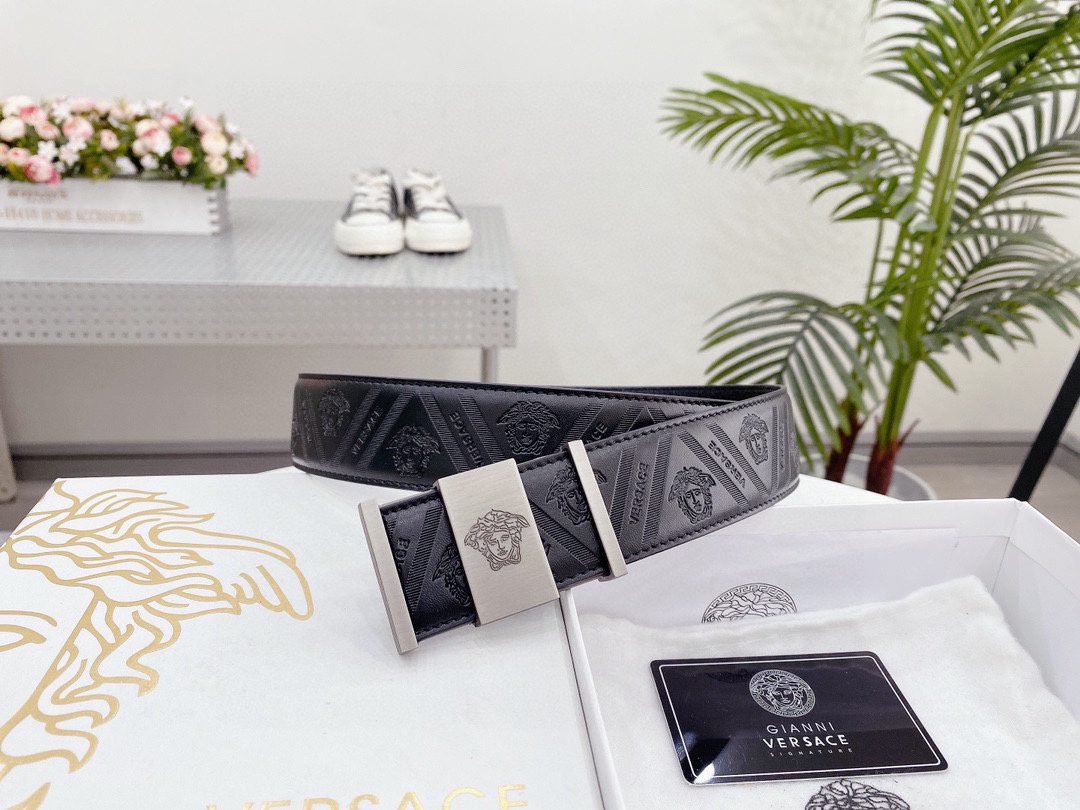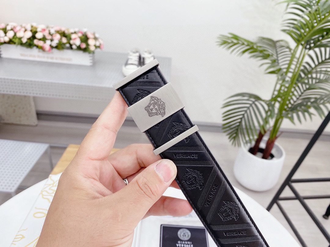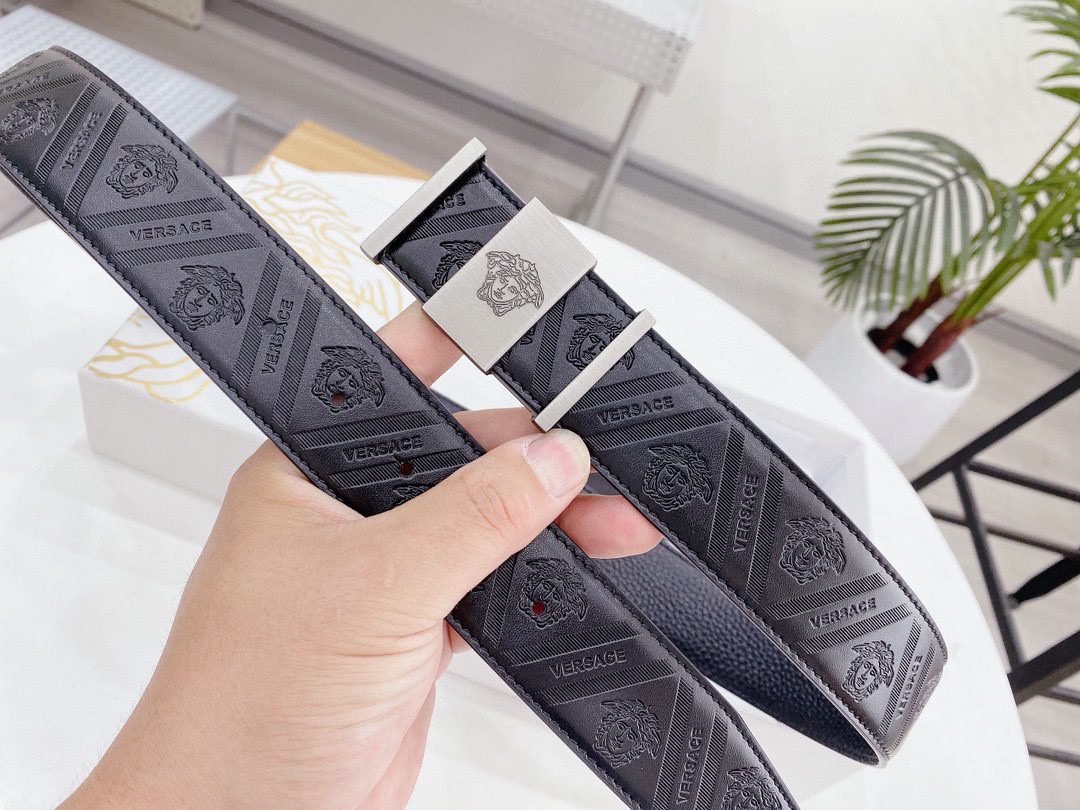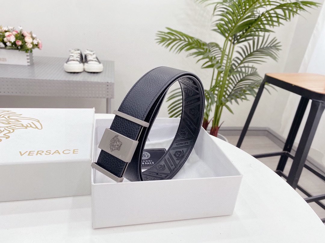 Home Belt VERSACE Belt Versace Silver Square Ring Buckle Black Belt Simple, Elegant, Noble, Luxury