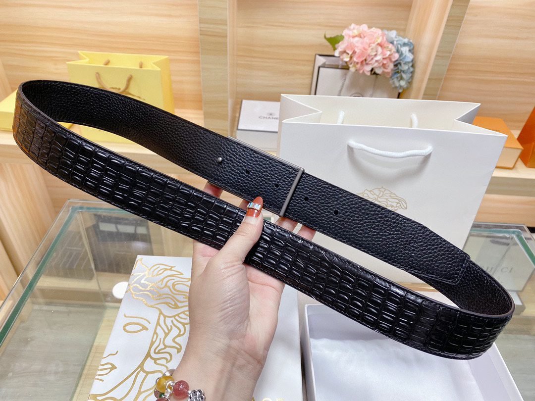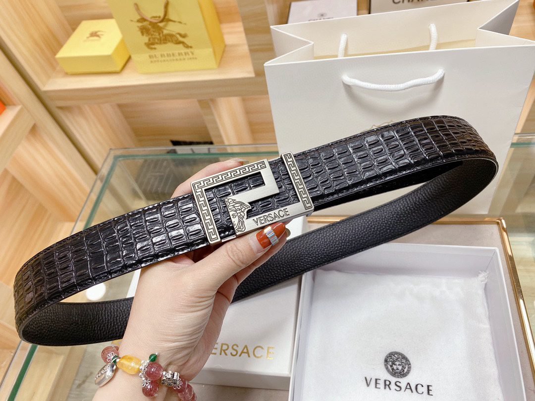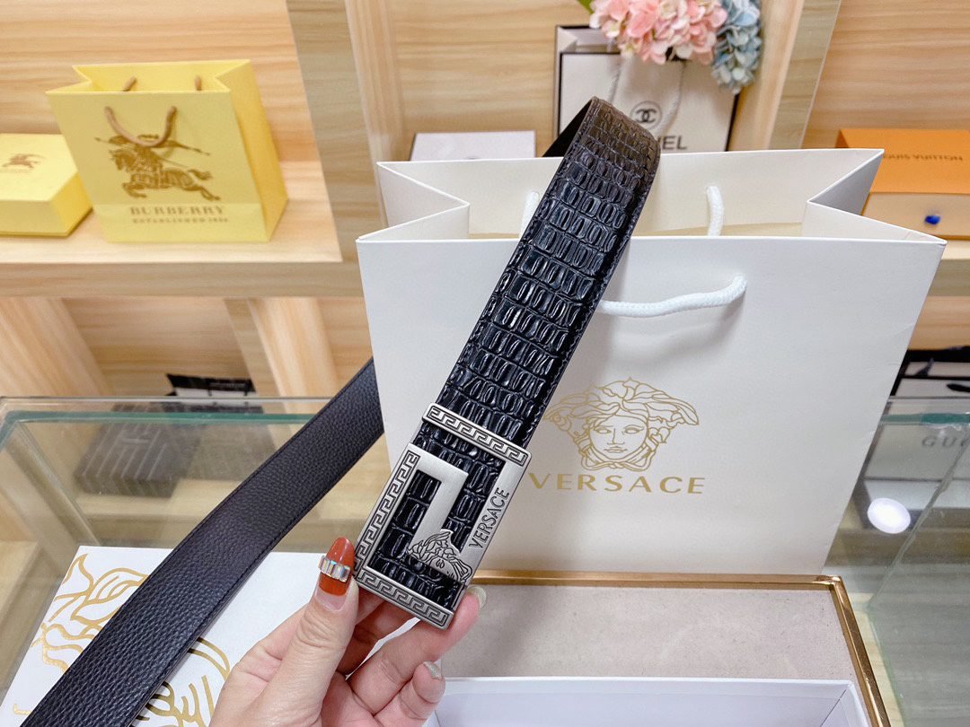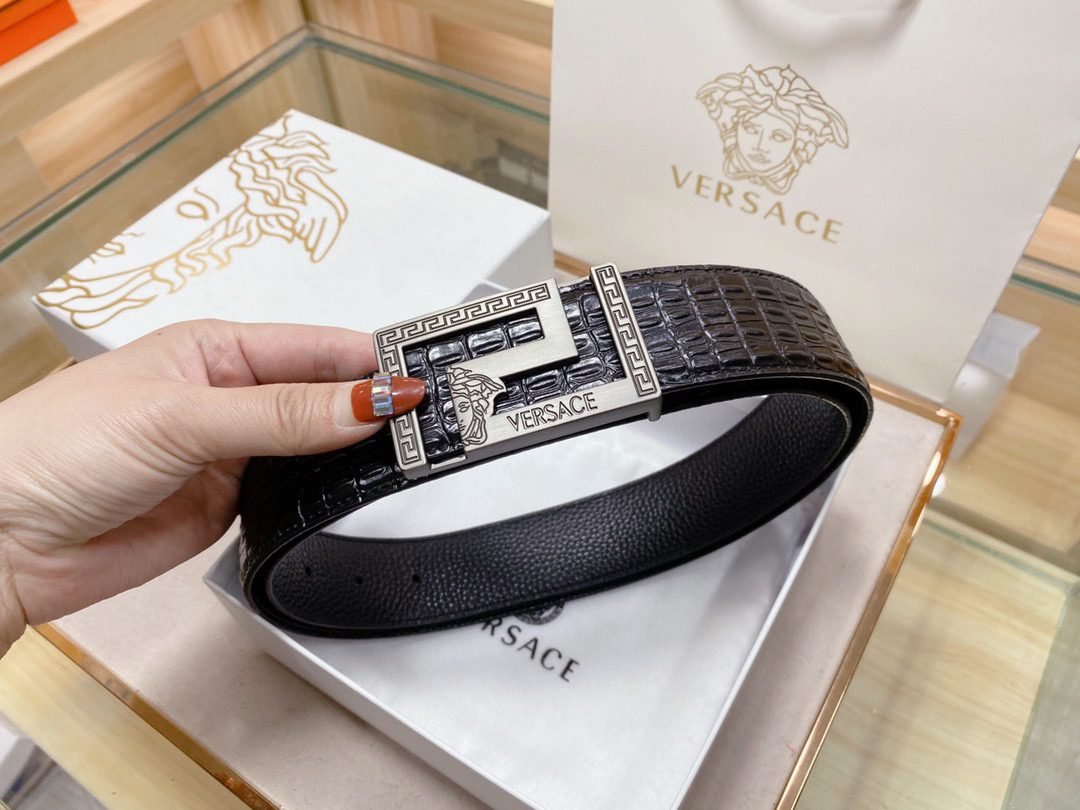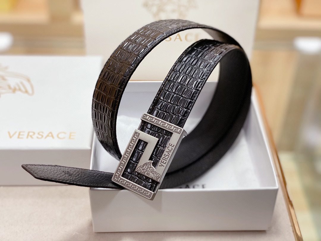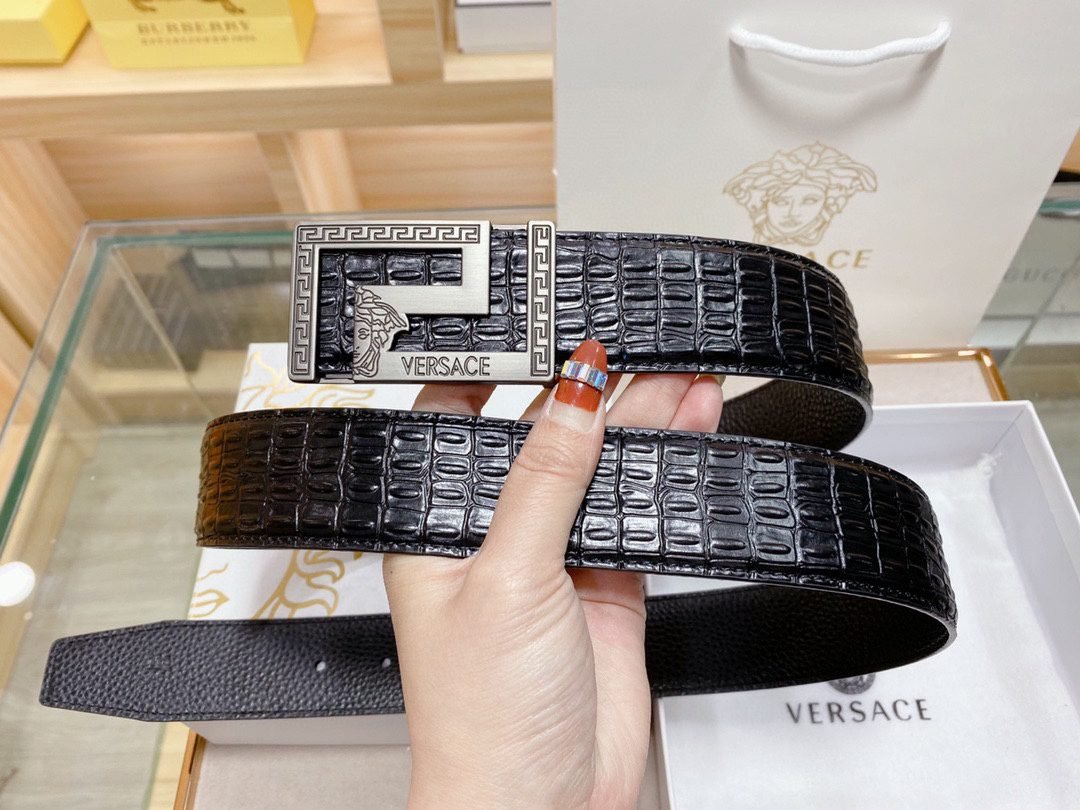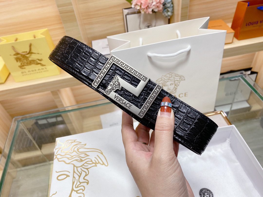Home Belt VERSACE Belt Versace Silver Square Ring Buckle Black Crocodile Pattern Belt Simple, Elegant, Noble, Luxury