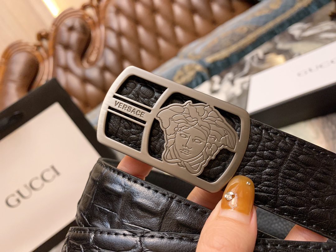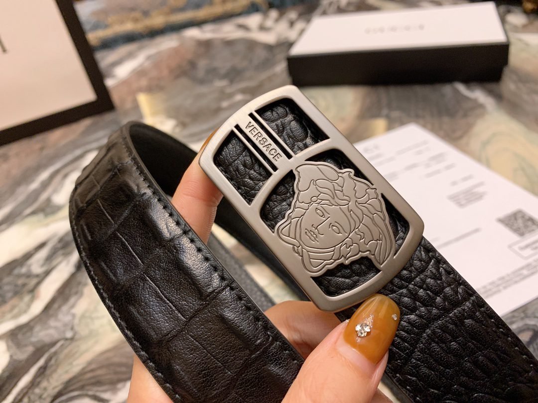Home Belt VERSACE Belt Versace Silver Square Ring Buckle Black Crocodile Pattern Belt Simple, Fashionable, Noble, Elegant