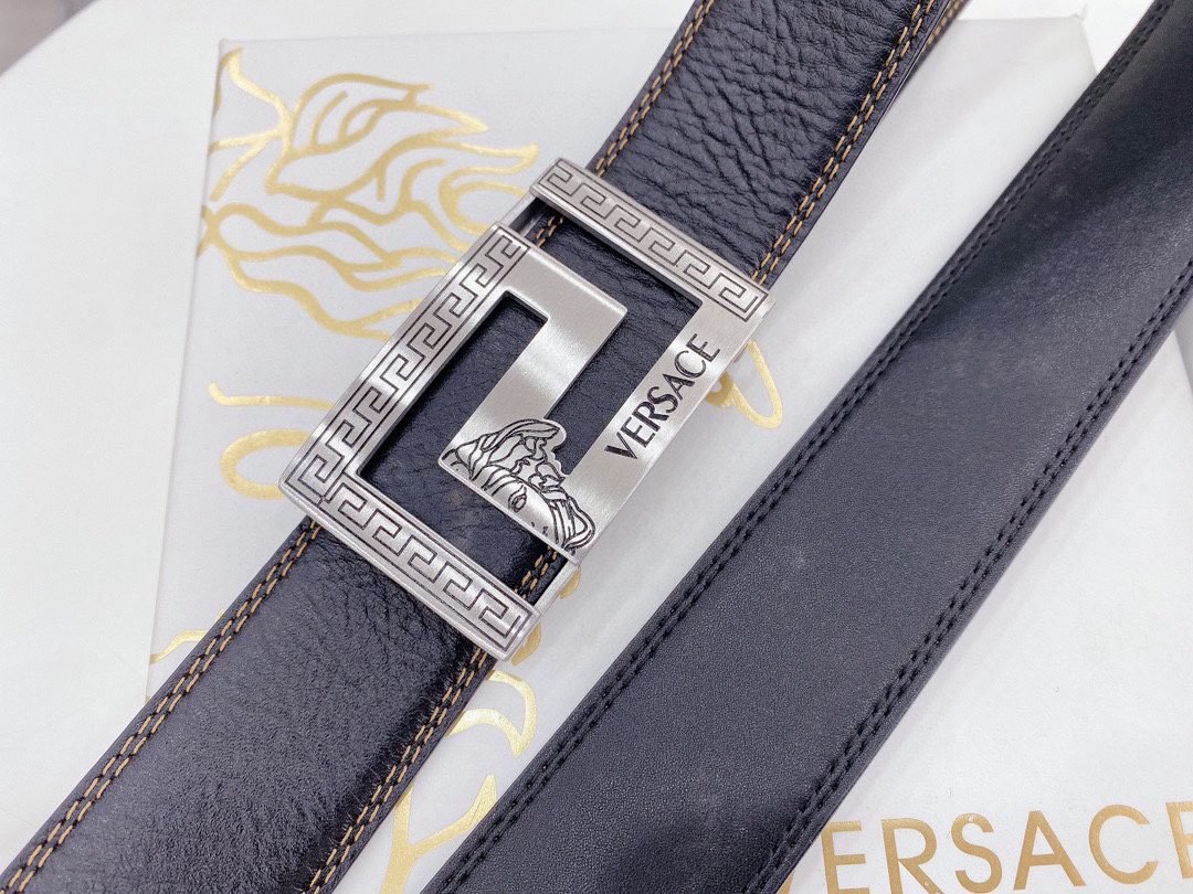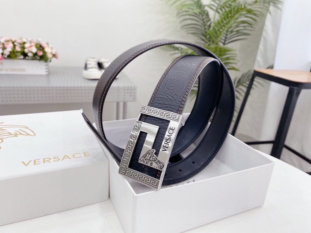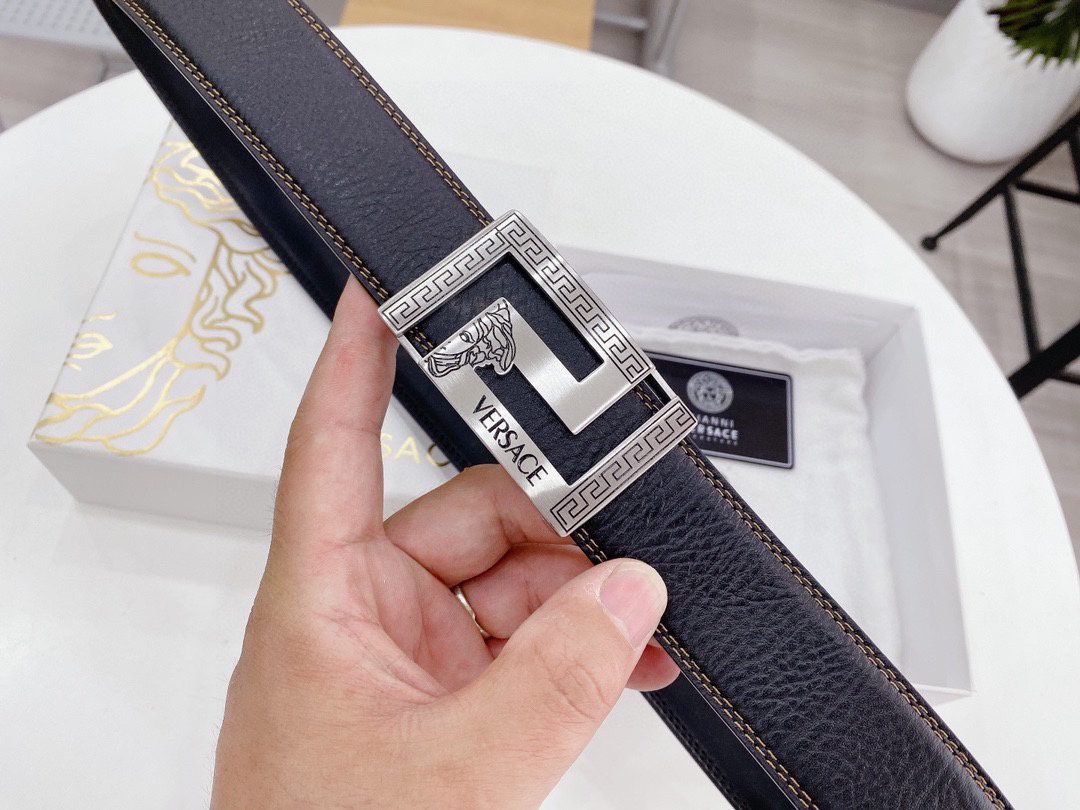 Home Belt VERSACE Belt Versace square buckle black belt, simple and elegant, low-key and luxurious