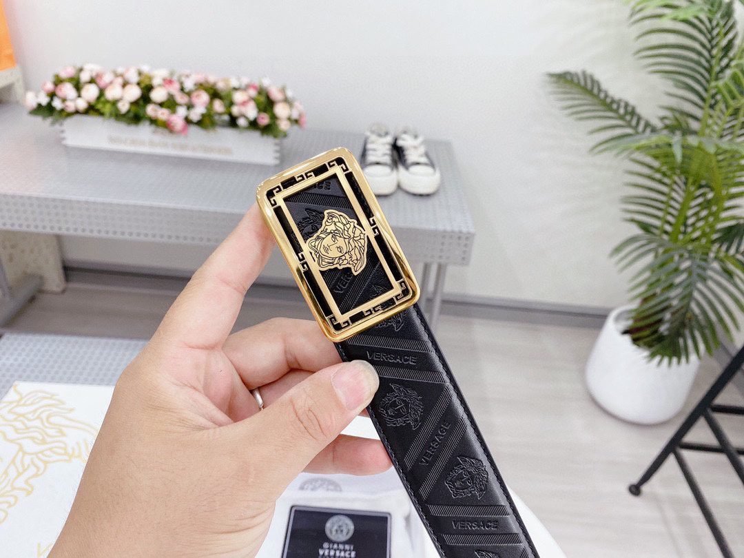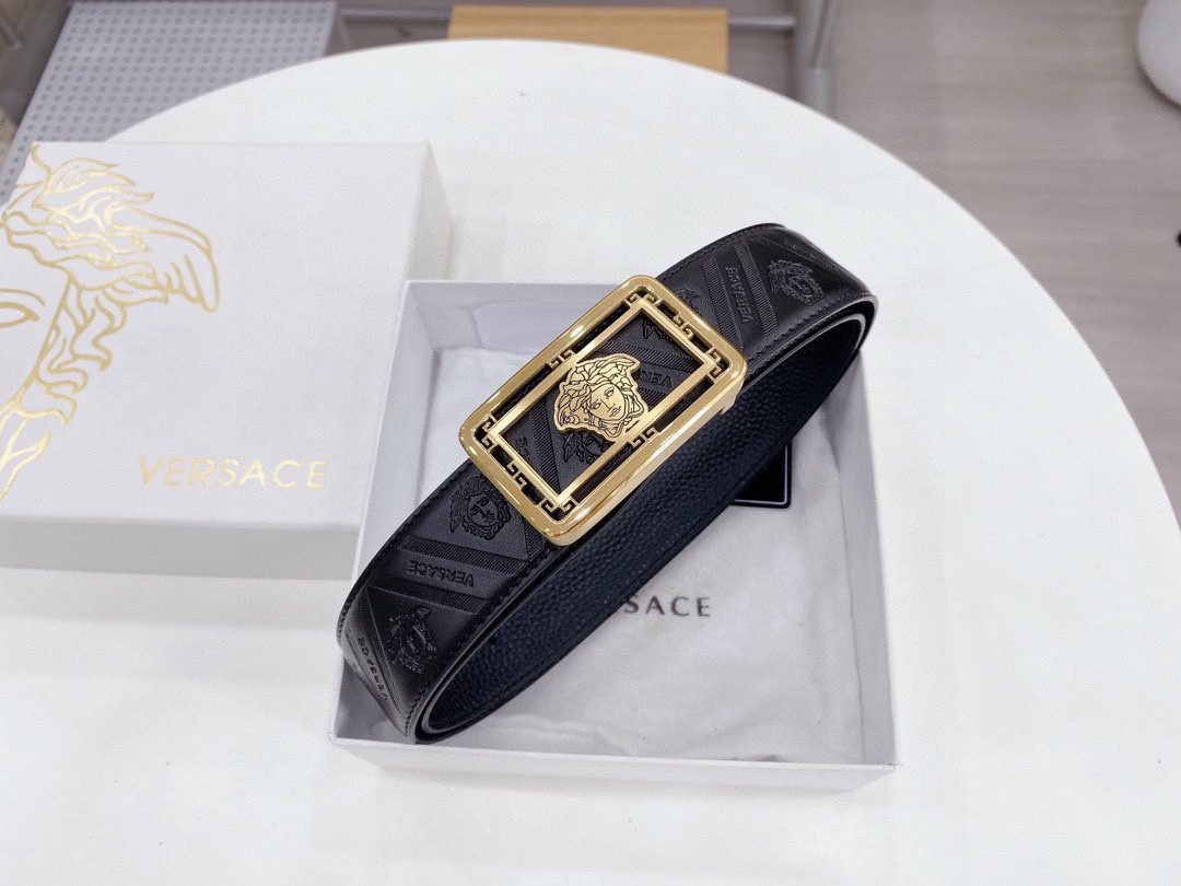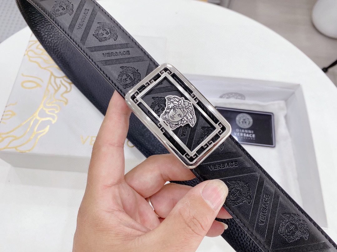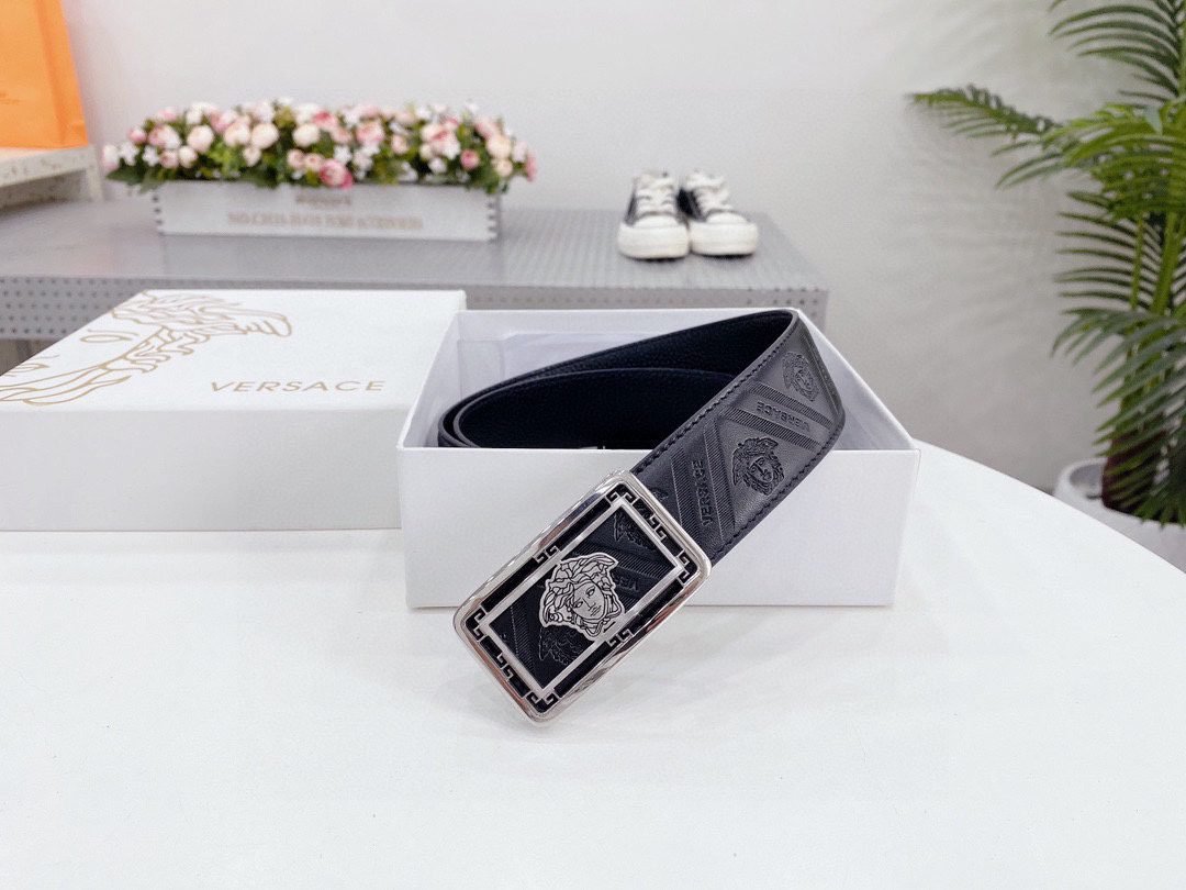 Home Belt VERSACE Belt Versace Square Buckle Black Textured Belt Classic Fashion Exquisite Elegance