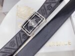 Versace Square Buckle Black Textured Belt Classic Fashion Exquisite Elegance
