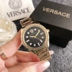 Decoration: The top ring of the watch case is decorated with Greek ripple patterns and Versace logo, showcasing the brand’s unique style.