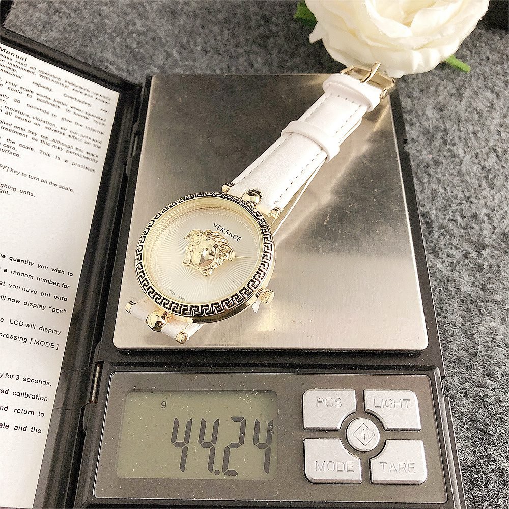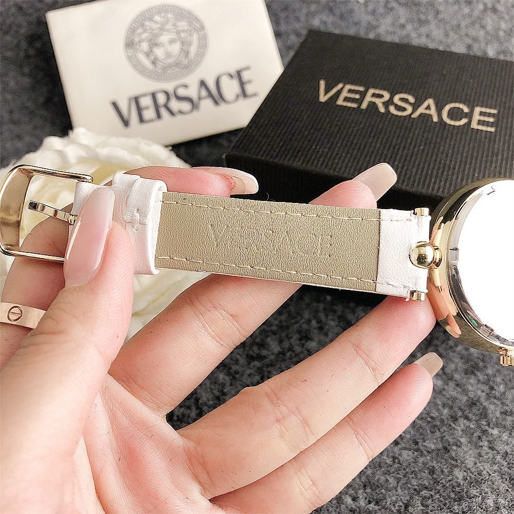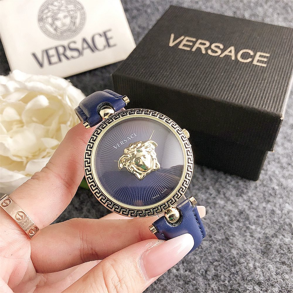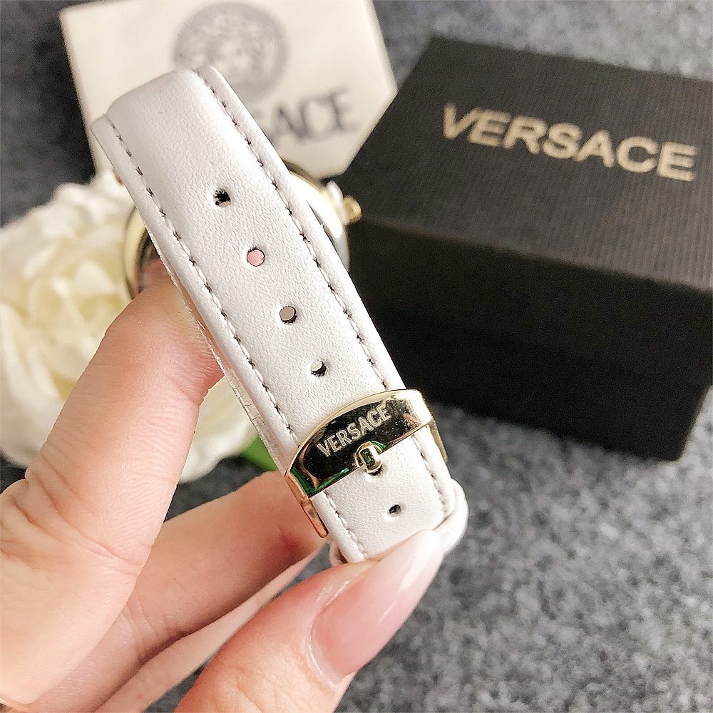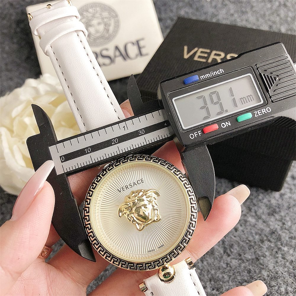 Decoration: The top ring of the watch case is decorated with Greek ripple patterns and Versace logo, showcasing the brand’s unique style.