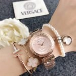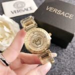 Decoration: The top ring of the watch case is decorated with Greek ripple patterns and Versace logo, showcasing the brand’s unique style.