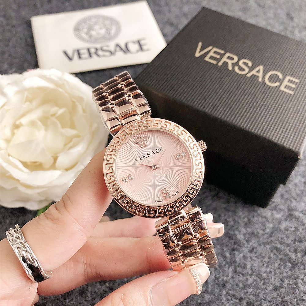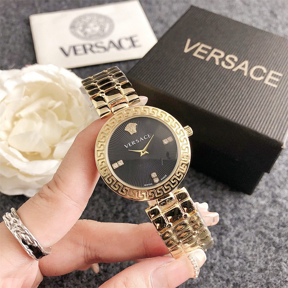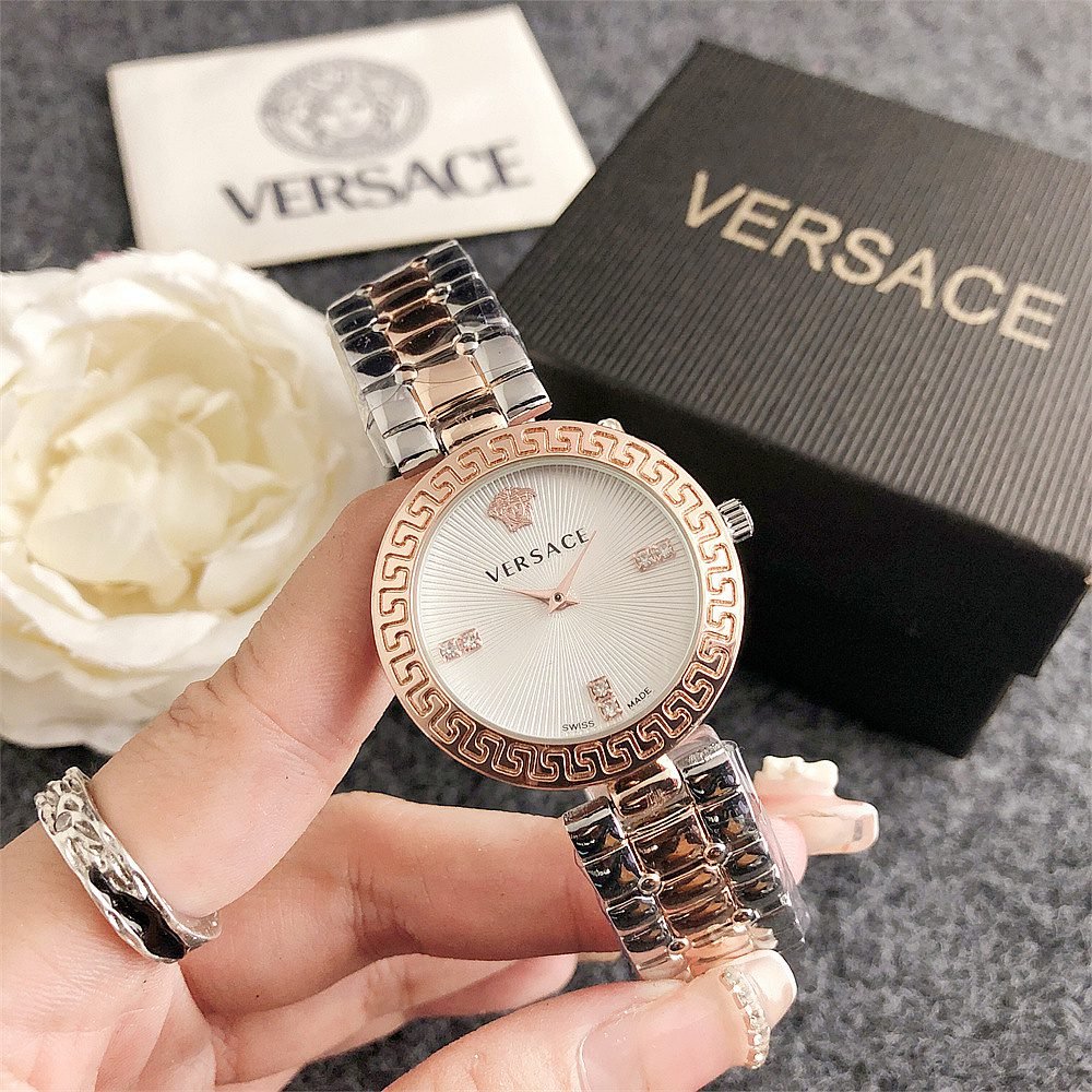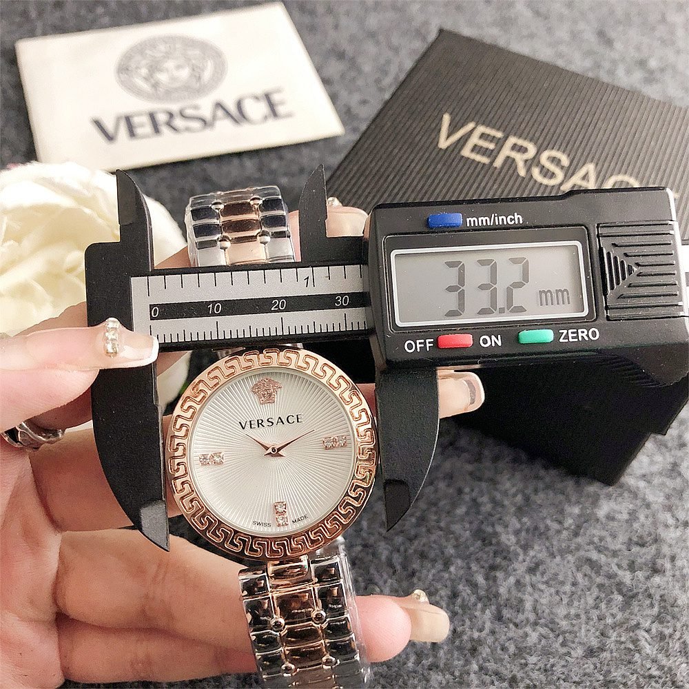Decoration: The top ring of the watch case is decorated with Greek ripple patterns and Versace logo, showcasing the brand’s unique style.